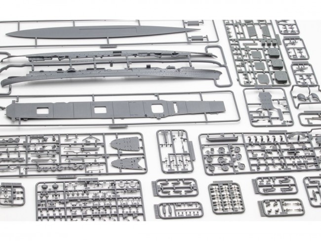 The Sh?kaku-class carrier, the most balanced among the Imperial Japanese Navy's large aircraft carriers, arrives in both a standard STD version and a PLUS version with additional parts! (Basic Specifications) ・Features glue-together assembly with meticulously detailed sculpting ・Primarily gray molded color, designed for assembly while enjoying painting ・Unlike the STD version, the PLUS version includes clear parts for select components to enhance realism ・The product is themed around the Pearl Harbor attack that launched the Pacific War and the period thereafter → No radar equipment installed; the bridge features Type 94 anti-aircraft mounts, with only one mount on the port side → Additional machine gun turrets at the bow and stern have not yet been installed → Flight deck markings, including white lines, are modeled after the state at the start of the war in December 1941 →Included aircraft are the trio active at the outbreak: Zero Model 21, Type 99 Carrier-Based Dive Bomber, and Type 97 Carrier-Based Torpedo Bomber. (Structure/Specifications/Features) ★ denotes features exclusive to the PLUS Edition. ●Hull ・Split-hull construction with left/right parts ・Internal reinforcement parts incorporated for structural strength ・Sidesponsons designed as separate parts for maximum dimensional accuracy and realism ・Equipped with external wiring from naval preparation work → External wiring reproduced with delicate engraving, including fastener sections ・All portholes open, recreating appearance from launch to wartime ・Hull bottom designed to fit inside the hull sides; does not reproduce below the waterline ● Flight Deck ・Integrated design part spanning from bow to stern ・Windshield railings and 3 elevators are separate components → Elevators can be displayed in the lowered position → Windshield railings can be displayed in the upright position in addition to the normal (lowered) state ・Deck contours expressed with detailed sculpting ・Wooden deck sections rendered with fine engraving → Depth allows for three-dimensional effect through panel lining while maintaining sculptural integrity ・Expansion joints depicted with recessed engraving ・Drainage channels around the flight deck reproduced ・Landing markings feature a rounded concave surface engraving ・Truss structure beneath the flight deck rendered with three-dimensional engraving ●Bow & Stern ・Anchor deck and stern deck provided as separate parts from the hull sides ・Anchor deck features an integrated structure with bollards and anchor platform → Deck surface features extremely fine split pattern (anti-slip) engraved → All flight deck struts are separate parts, realistically reproducing each strut's individual shape ・The Chrysanthemum Crest comes with a realistic engraved replacement part, separate from the crest mounting plate ・The two-tiered stern boat deck is reproduced with each tier as a separate part →While the boat davits are depicted as integrated with the deck, a realistic replacement davit part is included → The mounts are finely detailed with recessed holes (engraved indentations) and pad section shapes. → The deck surface features extremely fine split patterns (anti-slip) engraved. → All flight deck struts are separate parts, allowing each strut to be individually reproduced. → Included boats: 12-meter and 11-meter motorboats, 13-meter special cargo boat, 6-meter patrol boat. →★Replacement parts for the 12-meter and 11-meter motorboats are included for easier painting. →★The structure and rear canvas cover are separate parts. →★Replacement parts for the 13-meter cargo boat are included, separating the wooden floor and canvas sections. →Equipment like the loading drill gun and stern signal lights are provided as separate parts for increased realism. ●Bridge & Funnels ・Bridge base features left/right split structure parts ・Bridge windows integrated with compass bridge part (molded gray) ・Includes binocular telescope parts for enhanced detail on the anti-aircraft command post ・Detailed fittings like ladders and 60cm signal lights are separate/independent parts →The 60cm signal searchlight is molded in transparent plastic for realistic reproduction, differing from the STD (gray) color. ・Both funnel parts feature a top-bottom split structure →Accurately reproduces characteristics like the U-shaped appearance and molded details of the emergency smoke vents ・Realistic modeling with separate parts for the internal guide plates and the lattice structure at the funnel tips ● Anti-Aircraft Armament ・The twin 12.7cm high-angle guns feature separate parts for configurations with and without shields →Realistic replacement parts are included for the twin 12.7cm high-angle gun/Type A1 →Wide elevation angle range is reproduced; the gun side sighting shutter offers open/closed options →The Type 2 modified 12.7cm twin anti-aircraft gun with shield includes realistic replacement parts ・The 25mm triple machine gun comes with finely detailed parts, not an integrated molded piece →Realistic design with separate gun mount and barrel parts for easy paint separation →Assembly requires combining runners, positioning, then securing with flowable adhesive →Easy to paint the gunmetal barrel and battleship gray base ●Fittings ・Mooring davits are separate parts from the hull sides →Allows choice between deployed (at anchor) or stowed (underway) configurations ・Separate gangway parts enable reproduction of the at-anchor appearance ・Dedicated parts added for the bow lights mounted forward on both sides etc. ※Content as of March 2026. Please note that colors may appear different from the actual product due to monitor or image resolution variations. (From the Fujimi Models website)