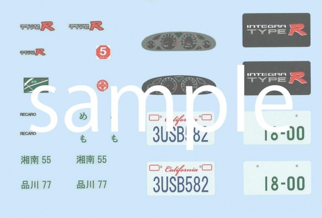 Integra Type R (DC2) reissued with aero parts included! Rear wing parts are included. Front spoiler and wheel parts made by Spoon are included. Decals include carbon fiber hood, logo, license plate, etc. Please note that colors may look different from the actual product due to monitor and image resolution issues. (From Fujimi Models website)