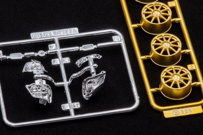 The Impreza WRX STI returns with a special edition featuring aero parts! □Body and front/rear bumpers are separate parts. □Front grille is reproduced as a separate part. □Chassis and interior are reproduced with precise sculpting; muffler is provided as a separate part. □Front wheels feature a steerable structure. □Reflector lights, muffler, and mirror surfaces include plated parts. □Wheels feature a gold-tone molded color. □ Tail lights and brake lights are molded in clear red/orange. □ Rear wing part included. □ Masking stickers for window painting included. □ Decals include logos, license plates, meter panels, etc. Please note that colors may appear different from the actual product due to monitor or image resolution differences. (From the Fujimi Models website)
