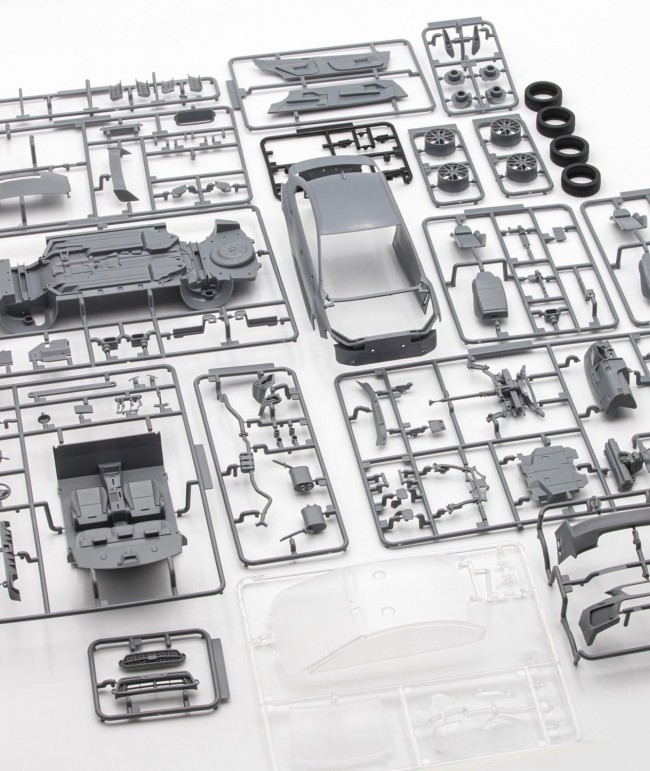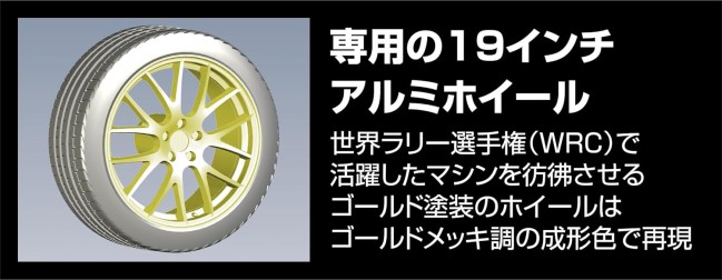 Now available: the “EJ20 Final Edition,” a special edition model originally released in a limited run of 555 units in 2019 (Structure & Specifications) ・1/24 scale. Features a glue-together assembly design with a precise build that emphasizes detailed sculpting. ・Incorporates a snap-fit system (in some areas) for ease of assembly. ・Each part is designed with dedicated glue surfaces to facilitate assembly. ・Available in 5 molded colors (White, Black, Silver, Gold, Clear) (Product Features) This model is based on the “EJ20 Final Edition,” of which only 555 units were sold in a limited release in 2019. It reproduces the distinctive features of the EJ20 Final Edition, including exclusive 19-inch wheels (gold-molded) and a rear bumper with an air outlet grille. It also reproduces the fog light cover shape characteristic of the final model (Applied F-type). Option to include or exclude LED accessory liners Large calipers (6-piston front, 2-piston rear) and drilled disc rotors Parts that are typically chrome-plated?such as lights, mufflers, and wheels?are included unplated to allow for user customization, such as painting them to achieve a chrome-like finish 【Body】 A single-piece body, excluding the hood, front bumper, and rear bumper. The hood is designed as a separate part → Features an opening/closing mechanism → The distinctive air intake section consists of three parts, designed with paint separation in mind 【Headlight Parts】 Consists of three parts: the main body, the light lens, and the projector lens. The main body is molded in a silver-plated finish, while the lenses are clear parts. 【Front Bumper】 Exclusive part for the late-model version. Comprises 9 parts: front bumper, front undergrille, front grille, radiator, fog light covers (R/L), LED accessory liners (R/L), and license plate. Designed with ease of alignment and gluing in mind. The front undergrille is separated from the front bumper to facilitate painting. The front grille is a single part with the emblem integrated. The radiator part is a single part. You can choose whether to include the accessory liners on the fog light covers. The LED accessory liners are clear parts. The license plate is a separate part shared with the rear. The cowl top panel and wipers consist of three separate parts. The front fender side garnish is a separate part. It is installed by inserting it into a recess in the body. The front fender duct is a separate part. It is installed by inserting it from the underside of the body. The side mirrors consist of three parts: the main body and base with the mirror integrated, the mirror cover, and the door mirror lamp. The main body and base are molded in black, the mirror cover is white, and the door mirror lamp is a clear part The door handles are separate parts, consisting of four parts with unique shapes for each The driver's side part features a sculpted keyhole The rear bumper consists of three parts: the bumper body, rear diffuser, and rear fog lights, with attention paid to paint separation The air outlet grille section of the rear bumper uses recessed molding to depict the grille openings. The rear fog light section is a clear part. The taillights consist of two parts: the main body and the lens. The main body is molded in a silver-plated finish, and the lens is a clear part. The distinctive large rear spoiler consists of three parts: the main body and the left and right struts. Installation requires drilling holes in the body (φ1.5mm). [Windows] The window parts consist of a three-piece integrated unit for the front and side windows, and a two-piece snap-fit assembly for the rear window. The inner surfaces feature engravings for paint separation. The rear wiper is a separate part. 【Interior】 The interior consists of a base part combining the floor and seat cushions, paired with left and right door trims, and includes two-piece seats, a shift knob, a parking brake lever, and a center console. The instrument panel is assembled by combining the hood panel for the multifunction display, the steering wheel, and the navigation system unit. 【Chassis】 While reproducing the actual vehicle’s structure as closely as possible, the model is equipped with the E.A.S. (Easy Alignment System), which allows for independent adjustment of ride height and camber angle on all four wheels in addition to the steering mechanism. In addition to lowering and raising the vehicle, it can reproduce various changes in vehicle posture, such as during acceleration, braking, and cornering. “E.A.S.” is a system that allows for the movement and adjustment of three key suspension components?steering, ride height, and camber angle?through independent, stepless height adjustment and camber adjustment mechanisms for all four wheels. [Engine & Exhaust System] The distinctive quad-exhaust system consists of seven parts: pipes, muffler RL, and tail sections. Silver-plated molded color 【Tires, Wheels, and Suspension】 ・Tires are newly produced custom parts. The rubber material reproduces the texture of the real thing. ・Wheels feature a custom design. Molded in a gold-plated finish ・Brake components are separately molded for the front and rear Brake calipers feature 6-piston calipers for the front and 2-piston calipers for the rear Disc rotors reproduce drilled discs Molded in a silver-plated finish 【Decals】 Includes emblems, STI logo, cherry red stripes, instrument panel, wheel caps, and more. 【Contents】 ・17 sprues, ・4 rubber tires, ・1 assembly manual, ・1 decal sheet, ・1 masking sticker Finished dimensions: Approx. 190 mm (L) × 85 mm (W) × 65 mm (H) *Information current as of April 2026. Please note that colors may appear different from the actual product due to monitor settings or image resolution. (From the Fujimi Models website)