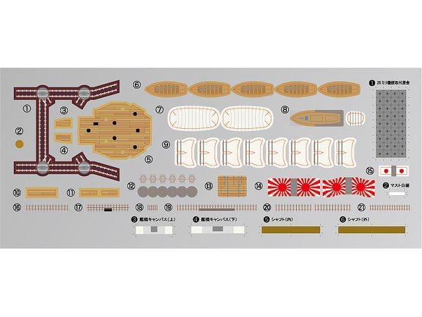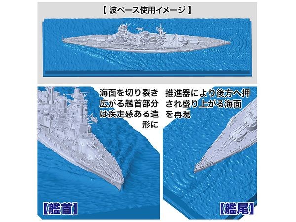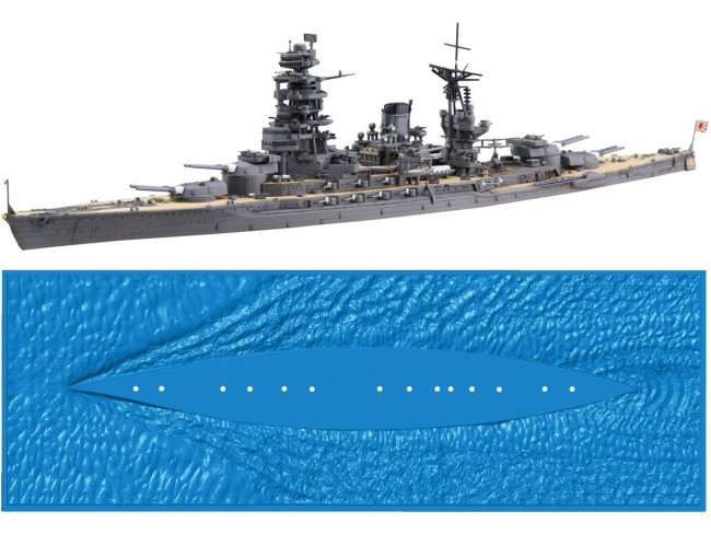 The Wave Series featuring a water surface stage that allows for simple and realistic display of ships in motion is now available!! (Basic Specifications) ・Composed of pre-colored parts, allowing for reproduction of the intended color scheme without painting. ・Snap-fit assembly enables construction without the use of adhesives. ・Includes a water surface base that realistically recreates the appearance of ships navigating the ocean, making display more lifelike and easy. ・The Nagato model depicts its appearance during October 1944 (Operation Sh?-1 / Battle of Leyte Gulf) → Features enhanced radar installations, increased anti-aircraft armament, and closed portholes compared to its wartime configuration ・The scenic sea surface is a plastic base that can be painted to match the Nagato-class battleship's hull shape → The wake pattern realistically recreates three-dimensional wave patterns from high-speed straight-line navigation (Structure/Specifications/Features) Hull ・Hull features left-right split construction, separated from the keel at the waterline. ・Molded in a dedicated gray color simulating the military ship color used at Kure Naval Arsenal. ・Hull portholes feature a dedicated shape reflecting the closed state of most. → Unclosed portholes are recessed, while closed portholes are raised, accurately reproducing the difference. ・Exterior electrical wiring along the hull is detailed, including fastener sections Armament ・Main guns are capable of elevation and traverse. →Balances minimal parts count with realistic modeling →40cm main gun barrels feature openings created using slide molds →Waterproof canvas is represented using included decals ・Main gun turrets 2 and 3 feature added machine gun positions, with dedicated parts provided ・Secondary guns feature a one-piece structure combining casemate and barrel ・25mm machine guns are one-piece structures molded in gray Bridge ・Bridge consists of layered assembly parts, faithfully reproducing all levels without omission ・Equipped with Type 21 and Type 22 radar for its late-war configuration ・Lower bridge deck's wooden decking reproduced with color separation via segmented design Functions/Masts ・Functions are left-right combination type, with steam exhaust pipes and whistle pipes integrated as one piece ・Top cap section (lattice) is open, creating a highly realistic, three-dimensional appearance ・Masts feature segmented masts, cross trees, and yards, balancing ease of assembly with shape reproduction Aviation Equipment & Carrier-Based Aircraft ・Includes Zero-type observation aircraft ・Parts colored in dark green plastic ・Panel lines are recessed; propellers are slide-molded to the fuselage for precise representation Wooden Deck ・Wooden deck parts feature a wood-like beige color ・Delicate recessed engraving depicts the plank-on-plank pattern, with a depth suitable for panel lining ・Deck fittings like air intake pipes (naval gray) are separate parts to reproduce color differences Bonus Parts ・Includes adhesive parts for more detailed finishing ・Single-mount machine guns and sandbag parts for bulletproof shielding are separate components ・Includes air intake cylinders on the wooden deck, auxiliary floats for seaplanes, bridge binoculars, and Type 2 signal devices Display Sea Base ・Plastic molded parts specifically designed to match the Nagato-class waterline shape (Mold/2026) ・Waterline section shape compatible with Nagato-class ships in the Kan NEXT series and Tokku series ・External dimensions: Length 396 x Width 134 x Height (approx.) 17mm; molded color: clear blue ・Reproduces waves spreading from the bow to the sides, subdued water surfaces along the hull, and water patterns generated by the propellers ・Multiple through-holes along the centerline on the hull bottom allow for mounting modifications Included Decals ・Two decal sheets are included for detailed color reproduction. ・Pre-cut decals are included for easy application. ・Decals cover basic areas and fine details, including the naval ensign and single-mount machine gun mounting brackets. → Includes details like main guns, waterproof canvas for ship's boats, wooden surfaces of emergency rudders, and aircraft transport decks. ・Includes nationality markings stickers for the seaplane; the warning markings on the wing leading edge are cut to the required length and applied. ・The box art, by Mikiya Yoshiwara, depicts the ship assembled in Brunei Bay just before Operation Sh?-1. ・Molded parts consist of 7 colors: (Kure Naval Arsenal color, Black, Brown, Light Beige, Beige, Dark Gray, Clear Blue) ・Completed size: Length 396 x Width 134 x Height 78 mm (includes display sea base) 【Contents】 ・Runners x35 ・Sea base part x1 ・Assembly instructions x2 ・Decal sheets x2 *Contents as of March 2026. Please note that colors may appear different from the actual product due to monitor or image resolution variations. (From the Fujimi Models website)