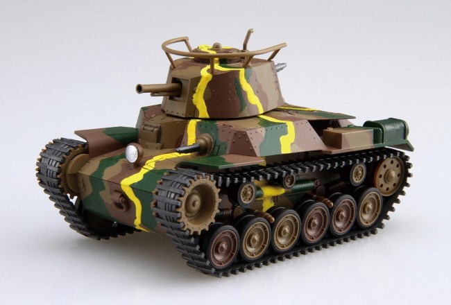 Plastic Model Deformed cute Type 97 Medium Tank Chi-Ha is reissued! The deformed tank is snap-fit and can be assembled without glue. Camouflage patterns can be reproduced even without painting with the included stickers and multi-color molding. The turret can be swiveled 360 degrees and the angle of the barrel can be changed. The crawler parts are molded in a heavy gun metallic color. The 3-color camouflage with a yellow band can be reproduced by attaching pre-cut realistic stickers.