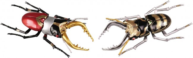 The Jiyu Kenkyu series "Beetle," known for its realistic molding, is now available in the image colors of Masked Rider Cougar & Gowram! Molded colors and stickers represent the image colors of Masked Rider Cougar and Gowram. This is a set of two figures that allows you to create the image of both Masked Rider Kuuga and GOWRAM. Precise molding that reproduces the details of the real thing to the utmost limit of realism. The horns, chest, legs, and other major parts of the figure are movable, allowing for a variety of poses. Easy assembly with no glue or tools required. Please note that colors may look different from the actual product due to monitor and image resolution issues. (From Fujimi Models website)
