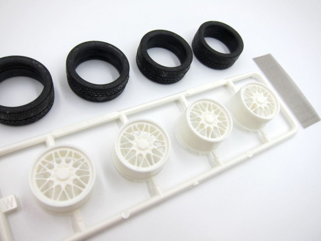Gulf Coast Series Reissued! Nissan Skyline GT-R (R33) RGO is now available! Parts are available in 3 colors: blue, white and transparent. Molded in one piece except for the front bumper. Bumper is late model. Interior is roll bar specification. Wheels are BBS 18 inch wheels enclosed in white molded parts. Metal mesh to reproduce the front mesh is included. Masking templates for front, rear and side glass are included in the instruction manual. Aero mirror parts are included. Metal parts for the muffler pipes are included. Two types of decals are included: standard decals for marking the GT-R and decals specially designed for the Gulf Coast. Numbers are freely selectable with rose numbers.