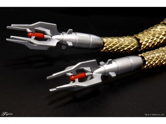 The decisive battle of 12/14! The biggest battle at the end of the century can be reproduced by new mold! Mecha King Ghidorah appeared! (Product Features) The head, body, wings, legs and tail of Mecha King Ghidorah have movable parts, allowing for a high degree of freedom in posing. The head (lower jaw and tongue) is ball-jointed and movable, making it easy to pose with minimal restrictions on movement. The left and right original necks have three movable points, all of which can be freely moved with ball joints. The central mechanical neck has 6 movable points. The legs have 2 movable points and the tail has 4 movable points. The shape of the figure has been deformed to represent its characteristic parts, but also to give it a sense of realism. The central head is designed with sharp antennae on the left and right sides, and fangs in the mouth. The laser cannon in the oral cavity (maxilla/palate) is a separate part, making it stand out. The eyeballs on the mechanical head are clear green, and the color of the color parts is exclusive to the figure, giving it a shining appearance. The original eyeballs are represented by pre-cut stickers, with a choice of three different color tones and patterns. The original face is a single part from the horns to the tip of the nose for ease of assembly. The large armored torso, which holds the machine hand used to capture Godzilla, is provided as a dedicated part. The main part of the fuselage is designed in three parts for ease of assembly: front, back and rear. The cockpit part, which is a modified version of the time machine KID, is located on the upper part of the fuselage and is provided as a separate part. The nerve conduit that conveys movement commands from the cockpit is exclusively provided as a metallic-colored spring pipe part. The conductors move flexibly following the movement of the neck. The choker (collar) to which the conductor parts are connected and the body side receiver are also newly designed parts. The left and right original necks are also new dedicated parts for the choker. The leg parts are newly designed parts for the armored shin. The lower body of the original shape is also newly designed parts for exclusive use by equipping machine hands. The sole of the foot is a new dedicated part with uneven skin for realism when visible even in flight. Parts are colored in 5 colors: gold, silver, white, red and clear green. The number of parts is 179. The parts are designed with an under-touch gate system, so they can be removed from the runner by hand without the need for nippers. (Please note that due to the under-touch gate design, there are rare cases where parts are unavoidably separated from the runner due to shocks during transportation, etc.) The original eyeballs, oral cavity, neck and wings of the mecha will be reproduced with the stickers included. The stickers are pre-cut and made of a material that is easy to follow and adhere. Two types of stickers are included, one for coloring the original parts and one for coloring the mechanical parts. The box art is a new drawing by Yuji Kaida. The box art was newly written by Mr. Yuji Kaida. Included] Runner x27 - Spring pipe parts x3 - Stickers x2 - Assembly instruction x1 Please note that colors may look different from the actual product due to monitor and image resolution issues. (From Fujimi Models website)