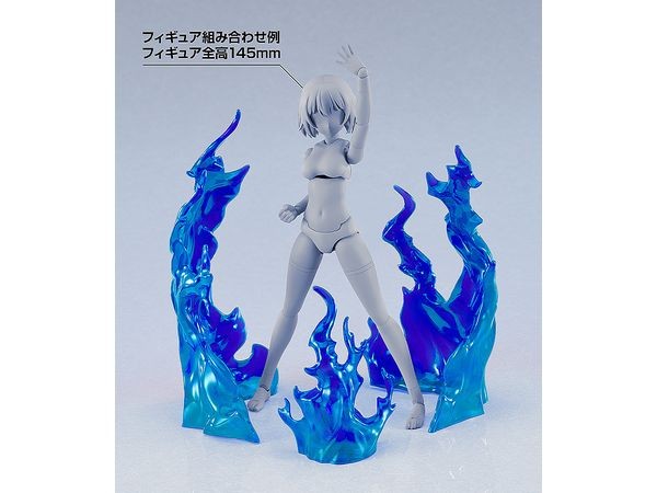 Figure Accessories and Parts Perfect for figures and plastic models! A simple and affordable effect set! Simple! Affordable! This set of blue flame effect parts will enhance the display of your figures and plastic models. Made of transparent ABS resin, these unpainted parts will not discolor or deform. You can freely arrange the three sizes of parts: 70 mm, 115 mm, and 135 mm. *The image is an example of use. The figure itself is not included. Product Specifications Specifications Transparent plastic effect parts: 70?135mm Manufacturer Good Smile Company Distributor Good Smile Company (C)GOOD SMILE COMPANY Notes About the product The photos shown are of sample products. Some specifications may differ from the actual product. (From the Good Smile Company website)