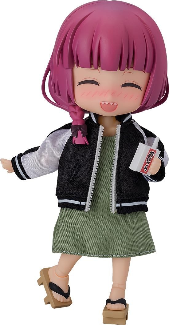 This is the Nendoroid series. Kikuri Hiroi arrives as a Nendoroid Doll! From the anime “Bocchi the Rock!”, Kikuri Hiroi becomes a Nendoroid Doll! Nendoroid Doll features a Nendoroid-sized head and a body size perfect for wearing cloth outfits, offering rich articulation for fun, easy posing in the palm of your hand. Please welcome Kikuri Hiroi as a Nendoroid Doll to your collection. *Skin tone matches the character's original color. 【Set Contents】 Figure Body Ska Jacket Dress Underwear Geta Sandals Set of Replacement Hands Dedicated Base (Compatible with Magnetic Soles) ※ Torso is not included. Product Specifications Title Anime “Bocchi the Rock!” Specifications Fabric, Magnet, Plastic - Painted Articulated Figure Non-Scale Dedicated Base Included Total Height: Approx. 140mm Prototype Production Kazuyoshi Udo, SELECT D Production Cooperation Sawada Kobo, Nendoroon Costume & Pattern Production Suzuko Nagasaki Manufacturer Good Smile Company Distributor Good Smile Company (C) Aki Hamaji / Houbunsha, Aniplex Important Notes About the Product The photos shown are of sample products. Actual product specifications may differ in part. Product painting involves manual coloring processes, so slight variations may occur between individual items. Please be aware of this. The product cannot stand on its own. Please use the included base or support stand. Prolonged wear may cause color transfer onto the body. Please be careful. Depending on the design of your existing Nendoroid Doll or clothing items, some may not fit properly. Please be aware of this. (From the Good Smile Company website)