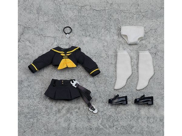 This is the Nendoroid series. The “Kagamine Rin” design from the song “Inferiority Complex” arrives as a Nendoroid Doll! The “Kagamine Rin” character designed by △○□×, appearing in the music video for the song “Inferiority Complex” (composed and arranged by Giga, lyrics by Reol), arrives as a Nendoroid Doll! Nendoroid Doll features a head size typical of Nendoroid figures, while the body size allows for easy dressing with cloth outfits. It's a palm-sized action figure with rich articulation for fun posing. Please welcome this “Inferiority Complex” design Rin as a Nendoroid Doll to your collection. *Skin tone uses the character's original color scheme. 【Set Contents】 Figure Body Choker Uniform Top Uniform Bottom Underwear Socks Shoes (with magnetic soles) Set of Replacement Hands Dedicated Base (compatible with magnetic soles) ※ Torso is not included. Product Specifications Series Name Character Vocal Series 02: Kagamine Rin & Len Specifications Fabric, magnet, plastic. Painted articulated figure. Non-scale. Includes dedicated base. Total height: approx. 140mm Prototype Production Toytec D.T.C, SELECT D Production Cooperation Sawada Kobo, Nendoroon Costume & Pattern Production Mieko Akimoto Manufacturer Good Smile Company Distributor Good Smile Company Art by △○□× (C) Crypton Future Media, INC. www.piapro.net Music by Giga Important Notes About the Product Photographs shown are of sample products. Actual product specifications may differ in part. Product painting involves manual coloring processes, resulting in slight variations between individual items. Please be aware of this. This product cannot stand on its own. Please use the included base or support stand. Prolonged wear may cause color transfer onto the body. Please be aware. Depending on the design of your Nendoroid Doll or clothing, some outfits may not fit properly. Please understand. (From the Good Smile Company website)