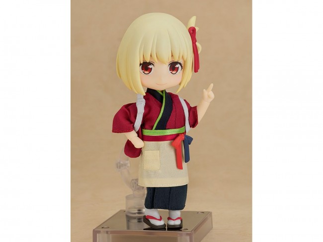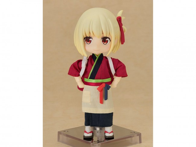 Accessory Parts for Figures Introducing the clothing set for the Nendoroid Doll Kinuki Chisaki Cafe Ricorico Uniform Ver.! This is the clothing set for the Nendoroid Doll Kinuki Chisaki Cafe Ricorico Uniform Ver. 【Set Contents】 Kimono Sash Apron Undergarments Shoes (with magnetic soles) ※The figure body and torso are not included. ※Please note that prolonged wear may cause color transfer onto the figure body. ※Depending on the design of your existing Nendoroid Doll, costumes, or Nendoroid characters, proper dressing may not be possible. Please understand. ※All contents of the “Nendoroid Doll Clothing Set: Chisaki Nishiki Kissa Rikori Uniform Ver.” are included in the “Nendoroid Doll: Chisaki Nishiki Kissa Rikori Uniform Ver.” figure. Product Specifications Title Licorice Recoil Specifications Fabric, magnet, plastic. Pre-painted completed product. Prototype Production Toytec D.T.C Production Cooperation Sawada Kobo, Nendoroon Costume & Pattern Production Suzuko Nagasaki Manufacturer Good Smile Company Distributor Good Smile Company (C)Spider Lily/Aniplex・ABC Animation・BS11 Important Notes About the Product The photos shown are of sample products. Actual products may differ slightly in specifications. Prolonged wear may cause color transfer onto the base body. Please be aware. Depending on the design of your existing Nendoroid Doll or clothing, proper dressing may not be possible. Please understand. (From the Good Smile Company website)