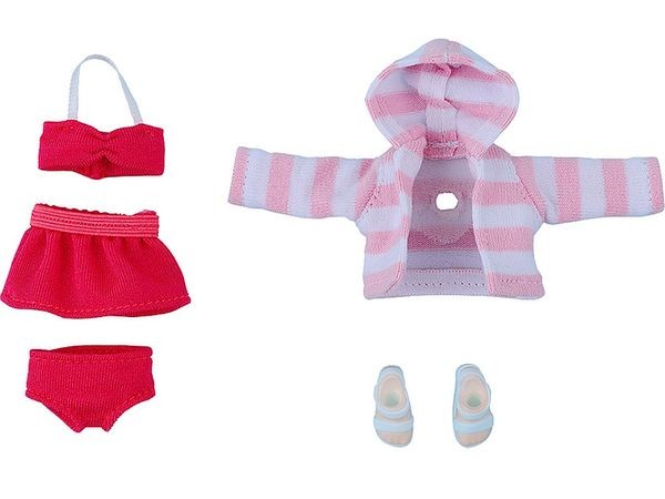 Figurine Accessories Here comes a set of swimsuits perfect for summer! A set of swimsuit-inspired clothes for your Nendoroid dolls. This set can be combined with the existing Nendoroid dolls. Set includes Bikini (top/bottom) Skirt Hoodie Sandals (with magnets for soles) Figure and torso are not included. Made of cloth, magnet and plastic. Painted and finished. Sculptor Nendoron Cooperation Sawada Studio Costume and pattern making Raindrop: Nannan The photos shown may differ slightly from the actual product. Color migration may occur on the bare body if the garment is worn for an extended period of time. Please be careful. Depending on the design of your Nendoroid or Oyofuku, it may not be possible to dress the figure correctly. Please be aware of this. (C) GOOD SMILE COMPANY (From Good Smile Company website)