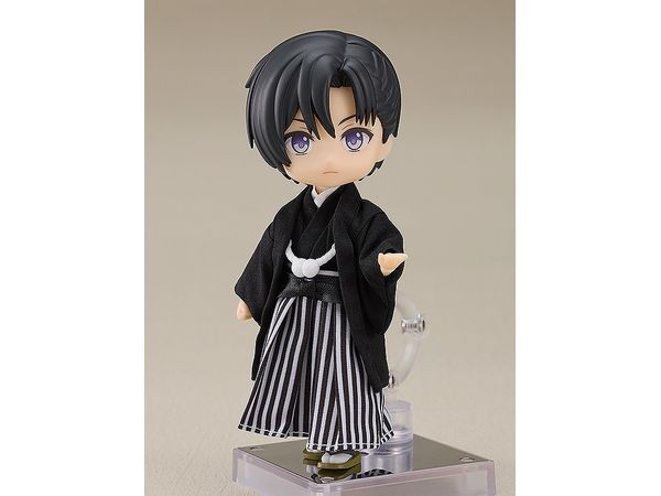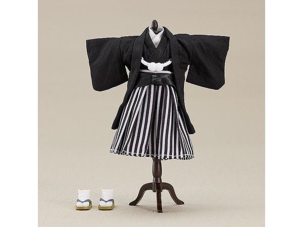Figurine Accessories A set of yofuku based on the image of a groom dressed in kimono is now available! This set includes a set of Japanese wedding gowns for Nendoroid Dolls. This set can be used with the existing Nendoroid Dolls. Set Contents Kimono Hakama Haori (Japanese traditional haori coat) Zori (soles with magnets) Figure and torso are not included. Made of cloth, magnet and plastic Painted finished product (C) GOOD SMILE COMPANY (From Good Smile Company website)