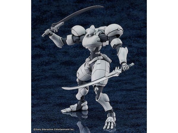 Plastic Sci-Fi/Animation Character Assembly Kit That is the choice of the world── Spirit of Samurai, finally made into a plastic model! From the popular game "High Mobility Fantasy Gun Parade March" comes MODEROID's first plastic model of the humanoid tank "Shikon-go Single Seater Type"! The figure is approximately 145mm in height with articulation at all joints. Two giant assault weapons, two super-hard swords and replaceable wrists are included. Each molded color and pre-colored parts allow you to recreate the color scheme of your image just by assembling the figure. Assembled plastic model Non-scale Height: approx. 145mm (C) Sony Interactive Entertainment Inc. (From Good Smile Company website)
