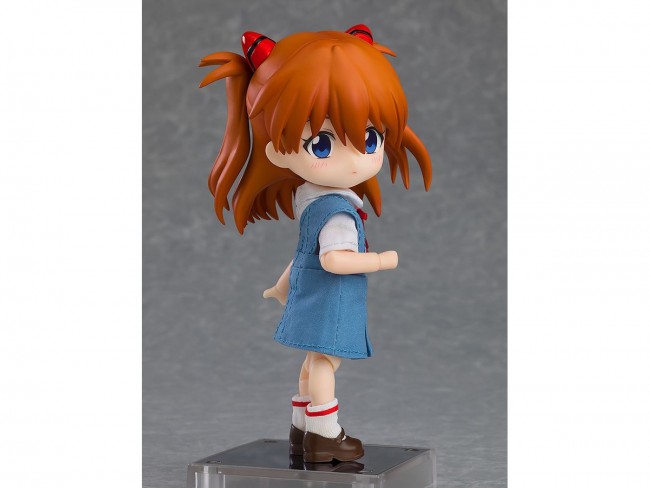 Nendoroid Series. Shikinami Asuka Langley is joining the Nendoroid series as a Nendoroid Doll! From "Rebuild of Evangelion" comes a Nendoroid doll of Shikinami Asuka Langley! Nendoroid Dolls are palm-sized action figures with a Nendoroid head size and a body size that allows you to easily dress her in cloth clothing, giving you plenty of posability and fun ways to move her around. Please be sure to display Shikinami Asuka Langley in her school uniform. The skin color is the original color of the character. Set includes Figure body School uniform Socks Underwear Shoes (with magnets on soles) Replacement wrist set Dedicated pedestal (with magnetic soles) A set of movable props Title Rebuild of Evangelion Specifications Complete painted figure made of cloth, magnet and plastic Non-scale Stand included Height: approx. 140mm Sculptor Design Coco Cooperation Sawada Kobo, Nendoron Costume and pattern making Mayumi Shimada Maker Good Smile Company (C) Color The photos shown are of a sample product. Some specifications may differ from the actual product. Due to the manual coloring process of the product, there may be slight differences in the painting of each product. Please understand this in advance. The product does not stand on its own. Please use the attached pedestal or prop. When the product is worn for an extended period of time, color migration may occur on the body. Please be careful. Please note that depending on the design of your Nendoroid Doll or Oyofuku, it may not be possible to dress the figure correctly. Please be aware of this. (From the Good Smile Company website)
