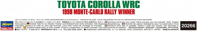 Hasegawa 1/24 Toyota Corolla WRC 1998 Monte Carlo Rally Winner japan NEW