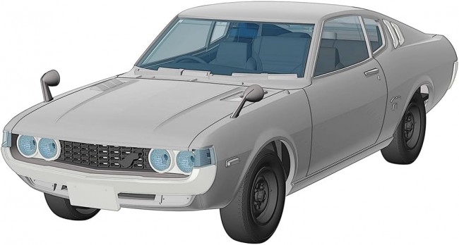 New Series Launch! The first release in the e-Moke Series is the Toyota Celica LB 1600GT No glue or painting required. With few parts, pre-painted components, and decals, assembly is a breeze! The body parts are silver. The front of the body and the fender mirrors are silver. The chassis and floor are black. The windows, headlights, and taillights are clear. The front and rear bumpers, headlight lenses, and pillar ducts are chrome-plated parts. e-Moke Series [Plastic Model][New Mold] Scale … 1:32 Part Number ……… EM01-SS Model Length … 132mm Model Width … 50.5mm (From the Hasegawa website)