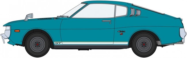 New Series Launch! The first release in the e-Moke Series is the Toyota Celica LB 1600GT No glue or painting required. With few parts, pre-painted components, and decals, assembly is a breeze! The body parts are turquoise. The front of the body and fender mirrors are silver. The chassis and floor are black. The windows, headlights, and taillights are clear. The front and rear bumpers, headlight lenses, and pillar ducts are chrome-plated parts. e-Moke Series [Plastic Model [New Mold]] Scale … 1:32 Part Number ……… EM01-CT Model Length … 132mm Model Width … 50.5mm (From the Hasegawa website)