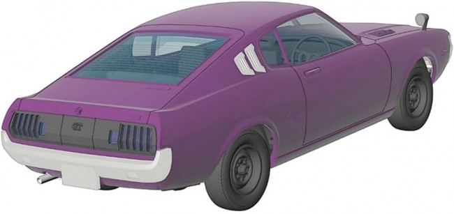 New Series Launch! The first release in the e-Moke Series is the Toyota Celica LB 1600GT No glue or painting required. With few parts, pre-painted components, and decals, assembly is a breeze! The body parts are purple. The front of the body and fender mirrors are silver. The chassis and floor are black. The windows, headlights, and taillights are clear. The front and rear bumpers, headlight lenses, and pillar ducts are chrome-plated parts. e-Moke Series [Plastic Model][New Mold] Scale … 1:32 Part Number ……… EM01-CP Model Length … 132mm Model Width … 50.5mm (From the Hasegawa website)