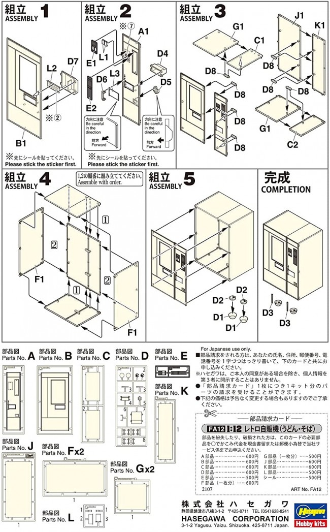 Hasegawa 1/12 Retro Vending Machine (Udon, Soba) japan NEW