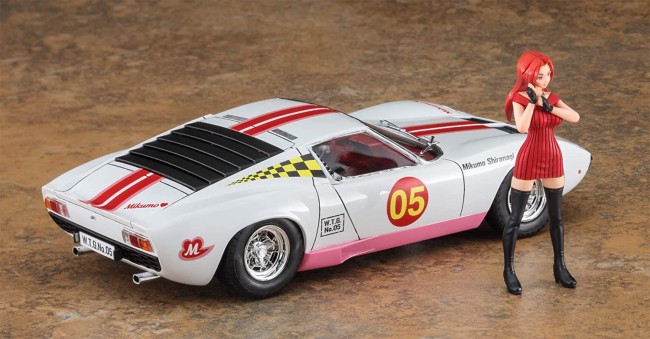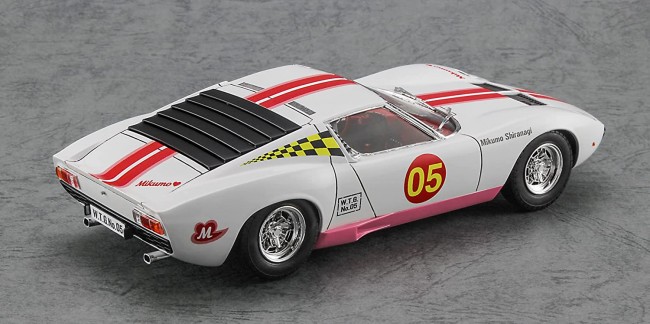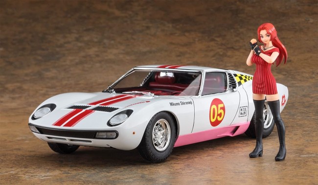 Plastic / Car model assembly kit Wild Egg Girls No.05 Lamborghini Miura P400 SV "Mikomo Shiranagi" w/figure The 5th Wild Egg Girls! Fearless freedom girl "Mikomo Shiranagi" is joining the Wild Egg Girls! She's joined by Miura in her original markings! The figure is sculpted by Tsurugidan. Illustrations by Takashi Fujisawa. Shiranagi Mikomo Character introduction page http://www.hasegawa-model.co.jp/eg/mikumo/ Decal (Marking) Vehicle markings, figure pupils, etc. Tamago Girls Series [Plastic model][Limited Edition][with resin figure]. Scale ... 1:24 Model length ... 181.5mm Model width ... 77mm Part number ......... SP544 (From Hasegawa website)