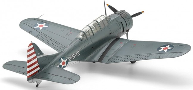 A 1/72 scale reproduction of the SBD-3 Dauntless from the 2nd Reconnaissance Squadron, based on the aircraft carrier USS Lexington! Decals (Markings) ・U.S. Navy, USS Lexington, 2nd Reconnaissance Squadron, aircraft “2-S-12” (May 1942) ・U.S. Navy, USS Ranger-based, 41st Reconnaissance Squadron aircraft “41-S-16” (November 1942, during Operation Torch) 1:72 Scale Aircraft > Limited Production [Plastic Model][Limited Edition][New Decals] Scale … 1:72 Part Number ……… 02538 Model Length … 136mm Model Width … 174mm (From the Hasegawa website)