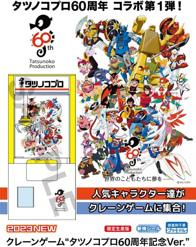 Crane Game "Tatsunoko Production 60th Anniversary Ver. The first collaboration with Tatsunoko Production 60th Anniversary! Here comes the "Crane Game" designed to commemorate the 60th anniversary of Tatsunoko Productions. The main panel and prize parts are decorated with popular characters. No glue is required to assemble the game, just plastic models and stickers. A sticker for the main panel of "Doronjo Ver" is also included as an extra! [Plastic model][Limited Edition][New sticker]. Scale ... 1:12 Part number ......... SP576 Number of parts ... 37 Model height ... 160mm Overall width ... 74mm (C) Tatsunoko Production (From Hasegawa website)