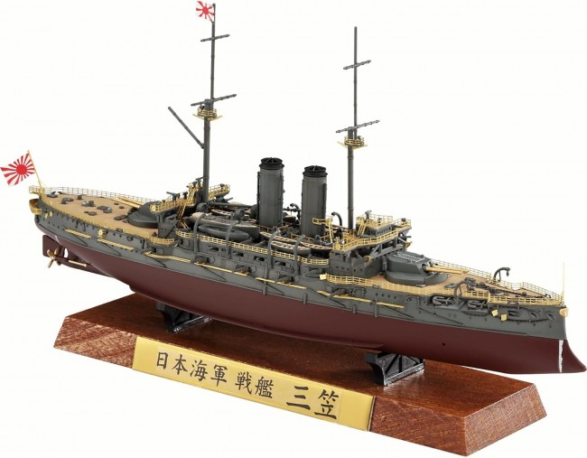 Ultra Deluxe Edition featuring full hull specification parts, complete with wooden deck, etched parts, and brass turned components! The wooden deck features laser-cut precision for realistic deck detailing and the authentic texture only wood can provide. Approximately 0.25mm thick with adhesive backing, it allows for easy installation. Includes an aluminum nameplate and a wooden display base. Etched Parts ・Handrails・Grating・Doors・Catwalks・Stern walkways・Secondary gun ports・Rattles, etc. Turned Parts ・Brass turned main gun barrels ×4 Product Specifications ・Imperial Japanese Navy Combined Fleet Flagship, Battle of Tsushima (May 27-28, 1905) ・Imperial Japanese Navy Combined Fleet Flagship, Battle of the Yellow Sea (August 10, 1904) 1:700 Scale Warship [Plastic Model][Limited Edition][Wooden Deck, Etching, and Cast Brass Parts Included] Scale: 1:700 Part Number: CH128 Model Length: 189mm Model Width: 45mm (From the Hasegawa website)