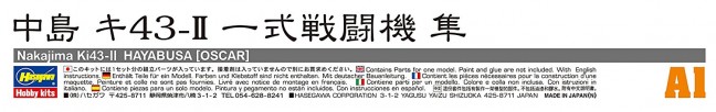 Hasegawa 1/72 Nakajima Nakajima Ki-43 Hayabusa japan NEW