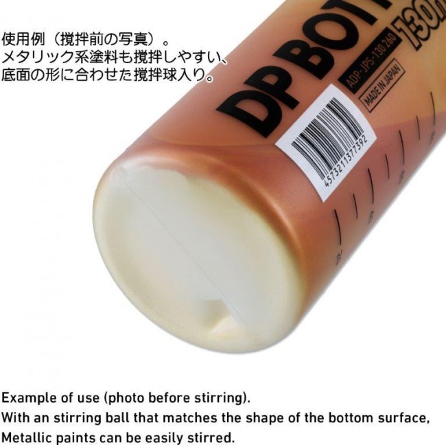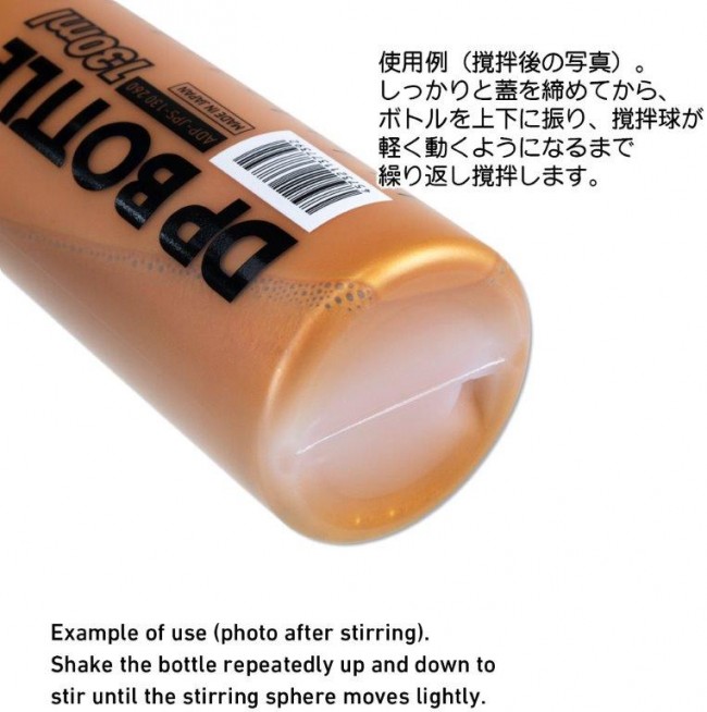 Airbrush dropper bottle for quickly pouring diluted model paint into handpiece cups. Equipped with a long nozzle that prevents paint from spilling and makes pouring easy. Please do not fill with anything other than 2-3 times diluted paint for models (resin paints). Strong solvents, paints, primers, high viscosity paints, and liquids originally contained in metal cans or with metal caps may alter the contents. Prior testing recommended. Contains ceramic stirring balls. Not a highly airtight container. Not suitable for long-term storage. Do not store the container on its side with the fluid in it. Do not store in high temperatures or in direct sunlight. If solidified paint accumulates at the tip of the nozzle, remove it. DP Bottle JPS 130ml (1 bottle) Capacity/130ml Material/PP, PE Size/ Diameter: approx. 45 mm, Height: approx. 131 mm Country of origin/ Made in Japan