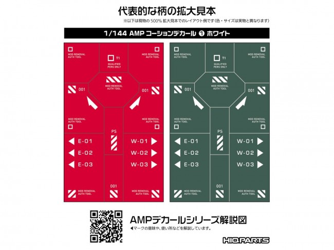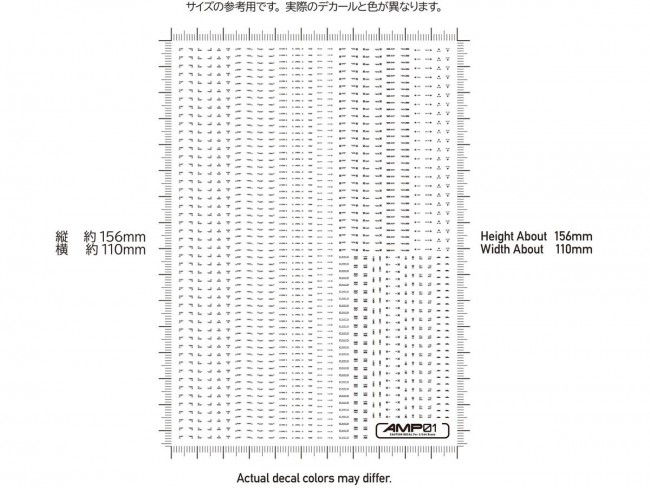 For those who want to perfect every detail, down to the decals! Ultra-small decals enhance the precision of your work!! The AMP water-slide decal series for mechanical models features a redesigned lineup to accommodate the increasingly detailed parts found in modern mechanical model kits. Centered around standard designs with minimal ornamentation, these decals heighten your model's precision and visual detail. While maintaining sufficient legibility, please refer to the text explanations in the blog to select the optimal placement locations. Despite their micro size, they feature high-definition printing that colors details without compromising the model's scale, maximizing the appeal of your build. Additionally, these gloss decals are “polish-compatible,” minimizing cloudiness in the clear coat layer during gloss finishing. AMP Caution Decal 01: “01” offers high versatility, featuring many frequently used patterns. AMP Caution Decal 02: “02” is highly versatile and includes many patterns with strong accent effects. Use in combination with “01”. AMP Caution Decal 03: “03” includes medium-sized and long-text markings. Use in combination with “01” and “02”. AMP Caution Decal 04: “04” includes large, numeric, and long-text markings. Use in combination with “01”, ‘02’, and “03”. Explanatory articles about the decal text and designs are published here: https://hiqparts.info/amp-ref Water Transfer Decals Size/110mm x 156mm Country of Origin/Made in Japan
