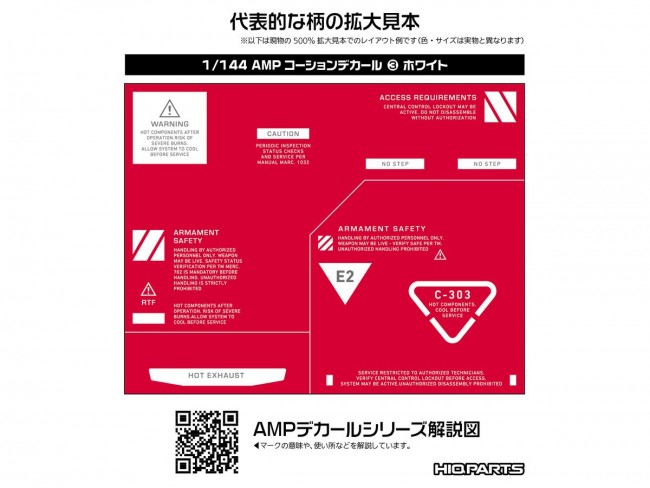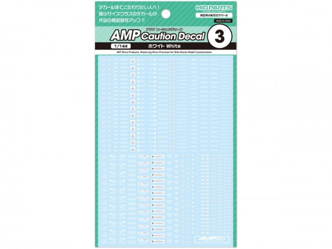 For those who want to perfect every detail, down to the decals! Ultra-small decals enhance the precision of your work!! The AMP water-slide decal series for mechanical models features a redesigned lineup to accommodate the increasingly detailed parts found in modern mechanical model kits. Centered around standard designs with minimal ornamentation, these decals heighten your model's precision and visual detail. While maintaining sufficient legibility, please refer to the text explanations in the blog to select the optimal placement locations. Despite their micro size, they feature high-definition printing that colors details without compromising the model's scale, maximizing the appeal of your build. Additionally, these gloss decals are “polish-compatible,” minimizing cloudiness in the clear coat layer during gloss finishing. AMP Caution Decal 01: “01” offers high versatility, featuring many frequently used patterns. AMP Caution Decal 02: “02” is highly versatile and includes many patterns with strong accent effects. Use in combination with “01”. AMP Caution Decal 03: “03” includes medium-sized and long-text markings. Use in combination with “01” and “02”. AMP Caution Decal 04: “04” includes large, numeric, and long-text markings. Use in combination with “01”, ‘02’, and “03”. Explanatory articles about the decal text and designs are published here: https://hiqparts.info/amp-ref Water Transfer Decals Size/110mm x 156mm Country of Origin/Made in Japan