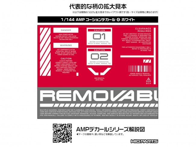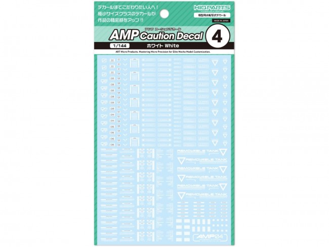 For those who want to perfect every detail, down to the decals! Ultra-small decals enhance the precision of your work!! The AMP water-slide decal series for mechanical models features a redesigned lineup to accommodate the increasingly detailed parts found in modern mechanical model kits. Centered around standard designs with minimal ornamentation, these decals heighten your model's precision and visual detail. While maintaining sufficient legibility, please refer to the text explanations in the blog to select the optimal placement locations. Despite their micro size, they feature high-definition printing that colors details without compromising the model's scale, maximizing the appeal of your build. Additionally, these gloss decals are “polish-compatible,” minimizing cloudiness in the clear coat layer during gloss finishing. AMP Caution Decal 01: “01” offers high versatility, featuring many frequently used patterns. AMP Caution Decal 02: “02” is highly versatile and includes many patterns with strong accent effects. Use in combination with “01”. AMP Caution Decal 03: “03” includes medium-sized and long-text markings. Use in combination with “01” and “02”. AMP Caution Decal 04: “04” includes large, numeric, and long-text markings. Use in combination with “01”, ‘02’, and “03”. Explanatory articles about the decal text and designs are published here: https://hiqparts.info/amp-ref Water Transfer Decals Size/110mm x 156mm Country of Origin/Made in Japan