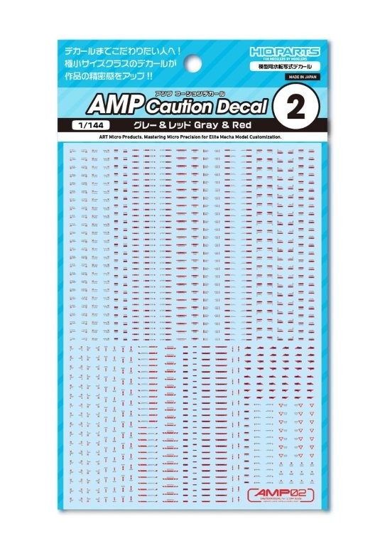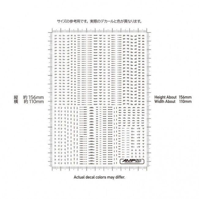 For those who want to perfect every detail, down to the decals! Ultra-small decals enhance your model's precision!! AMP water-slide decals for mechanical models are a new series featuring redesigned patterns to match the increasingly detailed parts found in modern mechanical models. Focusing on standard designs stripped of unnecessary decoration, they heighten your model's precision and visual detail. While maintaining a degree of legibility, please refer to the text explanations on the blog to select the optimal placement locations. Despite their micro size, they feature high-definition printing. They color details without compromising the model's sense of scale, maximizing the appeal of the model. Additionally, they are gloss decals compatible with polishing, making cloudiness in the clear coat layer less noticeable during gloss finishing. ・Water-slide decals Size/110mm x 156mm ・Country of Origin/Made in Japan ●AMP Caution Decal 02 ・“02” features highly versatile patterns with strong accent designs. Use in combination with “01”.