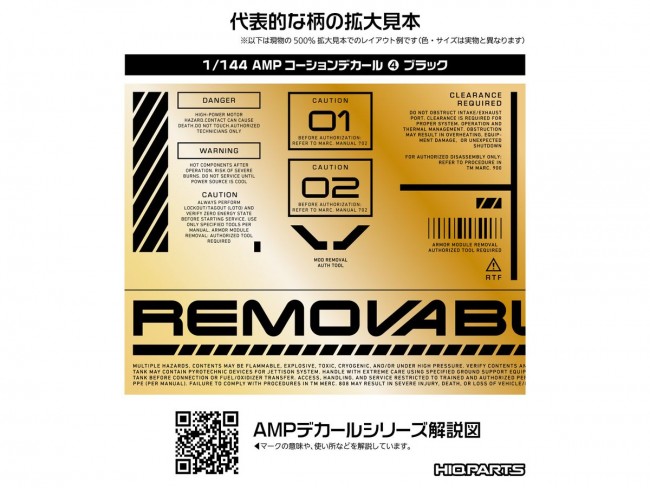 For those who want to pay attention to every detail, right down to the decals! These ultra-small decals enhance the precision of your build!! “AMP” is a new series of water-slide universal caution decals for mecha models, featuring redesigned patterns to accommodate the increasingly detailed part breakdowns of modern mecha kits. The collection focuses on standard designs with minimal ornamentation, enhancing both the precision and visual detail of your build. Since the text remains reasonably legible, please refer to the written instructions on our blog to select the optimal placement for each decal. Despite their ultra-small size, these decals feature high-resolution printing that adds color to fine details without compromising the model’s sense of scale, bringing out the model’s full appeal. Additionally, these gloss decals are “polish-compatible,” meaning any cloudiness in the clear coat layer is less noticeable when applying a gloss finish. “04” includes large numbers and marks with long text. Use in combination with “01,” “02,” and “03.”