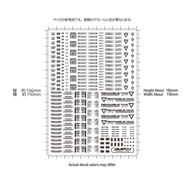 For those who want to perfect every detail, down to the decals! Ultra-small decals enhance your model's precision!! AMP water-slide decals for mechanical models are a new series featuring redesigned patterns to match the increasingly detailed parts found in modern mechanical models. Focusing on standard designs stripped of unnecessary decoration, they heighten your model's precision and visual detail. While maintaining a degree of legibility, please refer to the text explanations in the blog to select the optimal placement locations. Despite their micro size, they feature high-definition printing. They color details without compromising the model's sense of scale, maximizing the appeal of the model. Additionally, they are gloss decals compatible with polishing, making cloudiness in the clear coat layer less noticeable during gloss finishing. ・Water-slide decals Size/110mm x 156mm ・Country of Origin/Made in Japan ●AMP Caution Decal 04 ・“04” includes large, numbered, and long-text markings. Use in combination with “01”, ‘02’, and “03”.