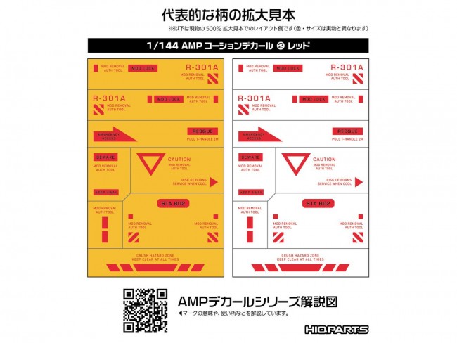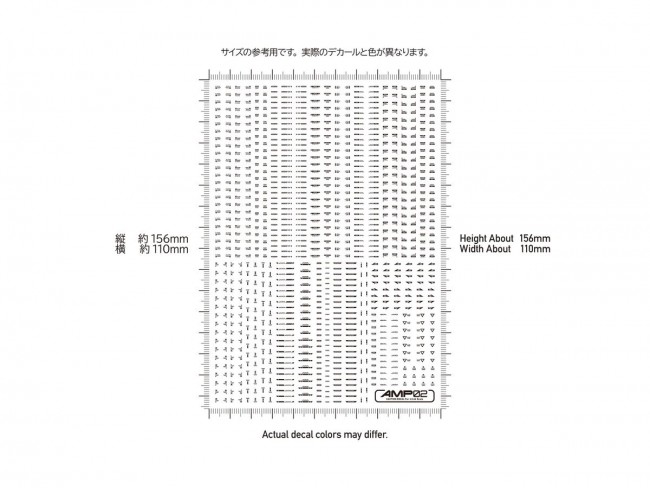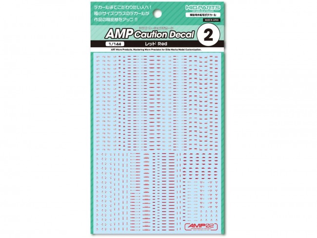 For those who want to perfect every detail, down to the decals! Ultra-small decals enhance the precision of your work!! The AMP water-slide decal series for mechanical models features a redesigned lineup to accommodate the increasingly detailed parts found in modern mechanical model kits. Centered around standard designs with minimal ornamentation, these decals heighten your model's precision and visual detail. While maintaining sufficient legibility, please refer to the text explanations in the blog to select the optimal placement locations. Despite their micro size, they feature high-definition printing that colors details without compromising the model's scale, maximizing the appeal of your build. Additionally, these gloss decals are “polish-compatible,” minimizing cloudiness in the clear coat layer during gloss finishing. Explanatory articles about the decal text and designs are available here: https://hiqparts.info/amp-ref Water Transfer Decals Size/110mm x 156mm Made in Japan AMP Caution Decal 01 “01” features highly versatile, frequently used patterns. AMP Caution Decal 02 (This Item) “02” features highly versatile patterns with strong accent effects. Use in combination with “01”. AMP Caution Decal 03 “03” includes medium-sized and long-text markings. Used in combination with “01” and “02”. AMP Caution Decal 04 “04” includes large-sized, numeric, and long-text markings. Used in combination with “01”, ‘02’, and “03”.