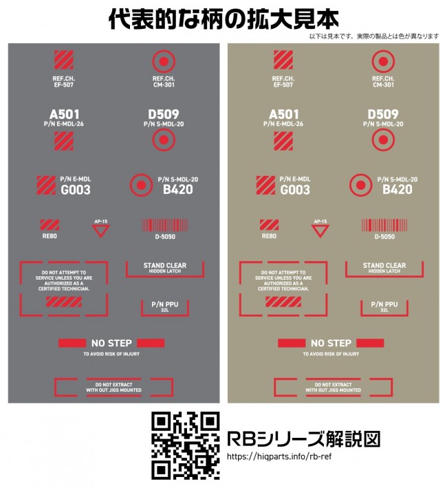 Scale] 1/144 Size] 110mm x 156mm White and red combination colors have been added to the popular RB Caution decal series. The multi-color specification combines two basic colors and two accent colors, giving plastic models a precise impression and contributing to a higher level of perfection. In addition, these gloss decals are "sharpenable" to reduce the appearance of a cloudy clear coat layer when finished with a glossy finish. Use a brush if the decal is too thin and small to handle. Use a wet brush to slide the decal over the surface, and use the brush to absorb the water for easier handling.