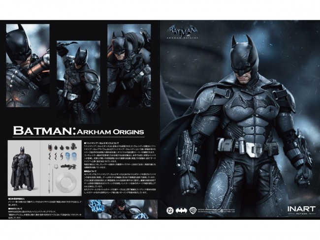 The “Dark Knight,” who has borne the darkness of Gotham and overcome countless deadly battles? INART brings this ultimate form to life in stunning 3D detail. ■ About “Batman: Arkham Origins” Set in an expanded version of Gotham City, “Batman: Arkham Origins” unfolds as an original prequel story set several years before the events of the highly acclaimed previous two titles in the series, “Batman: Arkham Asylum” and “Batman: Arkham City.” Set before the rise of Gotham City’s most dangerous criminals, this title features a young and inexperienced Batman facing a critical turning point in the early stages of his fight against crime. These experiences will determine the path that leads him to become the “Dark Knight.” As the story progresses, players will encounter numerous key characters for the first time and build relationships that are pivotal to the narrative. ■About the Product This figure faithfully recreates Batman’s battle-damaged appearance from *Batman: Arkham Origins*, featuring high-precision sculpting that captures every detail of the in-game model. Furthermore, advanced painting techniques vividly depict his tense expression, while delicate shading recreates the game’s distinctive atmospheric lighting. The damage and wear on the entire Batsuit are also realistically rendered in three dimensions. The battle-damaged cape, reinforced with wire, is crafted from high-quality, delicate fabric, achieving both natural draping and excellent posing capabilities despite the small scale. ■ Japanese Instruction Manual Included The manual provides clear explanations in Japanese regarding the parts list, assembly instructions, and articulation features. Even first-time collectors can enjoy this figure with confidence. ■About INART INART is a high-end figure brand established in 2022. Guided by the philosophy of “ultimate realism,” we pursue uncompromising quality in every aspect?from materials and sculpting to painting. 【Batman (Batman: Arkham Origins) Battle Damage Ver. Action Figure】 Product Name Batman: Arkham Origins Set Contents ・Figure ×1 ・Head Sculpts ×2 ・Interchangeable Hand Parts ×6 ・Wire-reinforced Cape ×1 ・Batarangs ×3 (Remote Control / Sonic / Standard) ・Remote Claw ×1 ・Wire ×1 ・Electrical Shock Effect Parts ×2 ・Base ×1 ・Clear Stand ×1 Size Total Height: Approx. 180mm Materials PVC, ABS, POK, Die-cast, Real Fabric, etc. BATMAN: ARKMAN ORIGINS and all related characters and elements (C) & TM DC, WB SHIELD: (C) & TM WBEI. (s26)