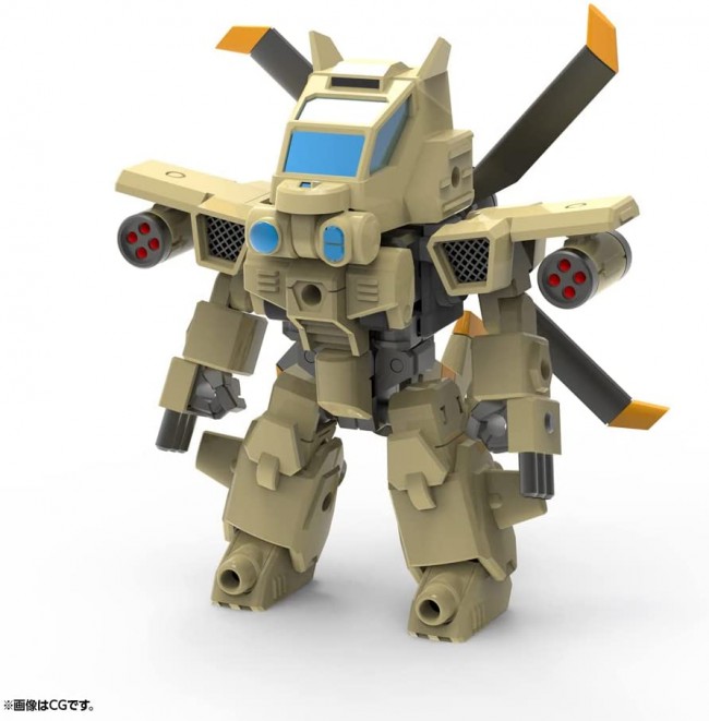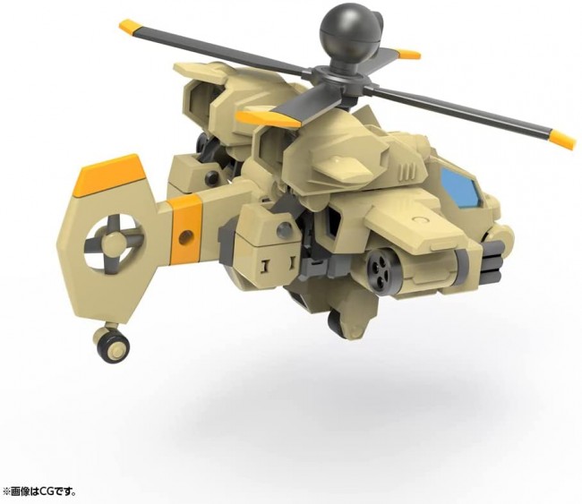 Plastic SF / Anime character assembly kit The concept is easy to assemble and easily transform! "Cute" deformed robots by mechanic designer Kunio Okawara will appear one after another in plastic models! A comic by Koichi Tokita is also serialized in the assembly manual! Calm and calm tactical support Evoroid "Gyron" can be transformed from a deformed robot to a combat helicopter without replacement! The core part that is common to the series is a 3mm joint that combines a large number of "joints with a simple design", so you can play with a wide range of ways such as adding frames and building a new deformation mechanism by combining them. The 3mm joint is common to various Kotobukiya original series such as Frame Arms, Hexa Gear, Frame Arms Girl, Megami Device, etc., so you can make mechas with various motifs depending on your ideas. ■ The core parts assembled according to the 3mm joint standard can be used as they are as a variable frame, and can be transformed from a deformed robot form to a combat helicopter form. ■ Various expansion parts such as M.S.G weapons can be attached and customized via the 3mm joints provided in each part of the main body. ■ Since the joints of each part such as neck, waist, shoulders, elbows, wrists, and ankles are connected by the 3mm joint standard, each part can be expanded by using various M.S.G mechanical supply joint sets. ■ Molding colors are "Desert Yellow" and "Gunmetal" for the main body, "Clear Blue" for the canopy, and "Gunmetal" for the core. In addition, a sticker is also included, so you can easily reproduce the image of the illustration. accessories ■ Dedicated missile pod x 2 (C) KOTOBUKIYA ----- ----- the work Evoroid series Character plastic model scale NON Product size Overall height: 83mm Product Specifications Plastic model Number of parts 51-200 material PS / ABS design Astray's Co., Ltd. * Products other than "EVG-R01 Gyron" are not included in the actual product. * The image is under development. Different from the actual product. * In the recombinant example, a plastic model with a target age of 15 years or older is used. (From the Kotobukiya website)