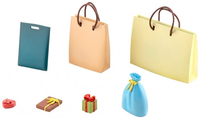 The shopper (large) (small) can be hung on the character's shoulder or held in the hand by using a "string" on the handle, so you can easily create a shopping scene and play.