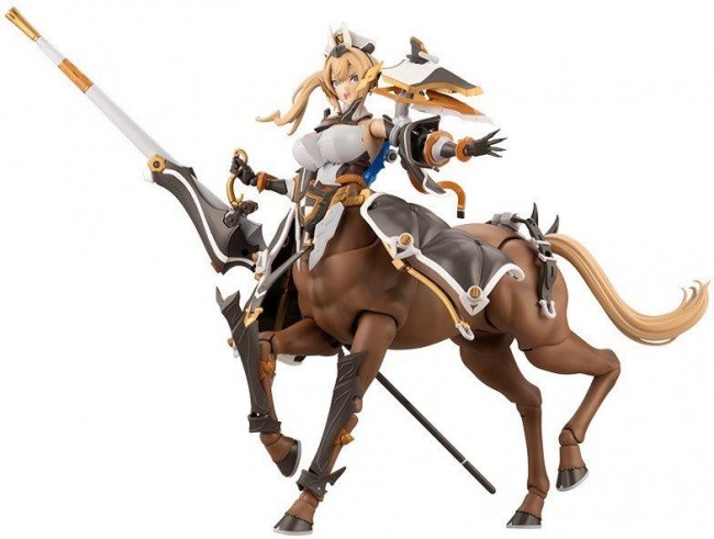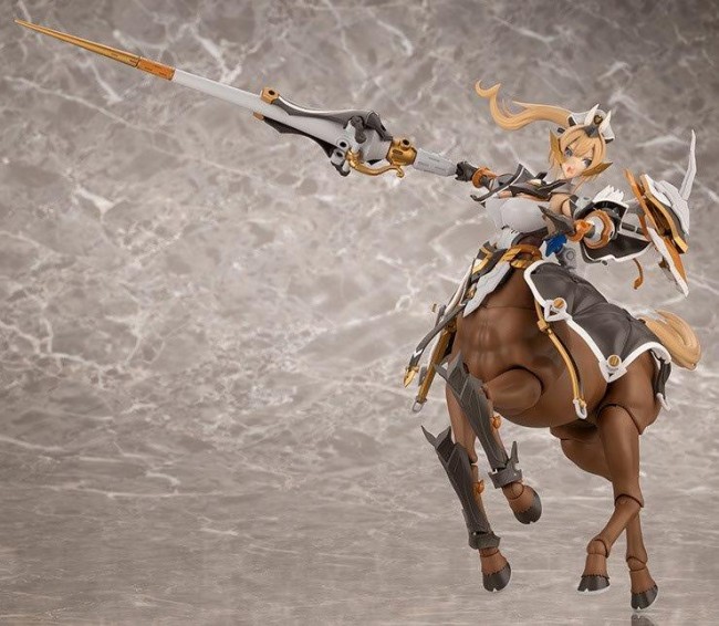 Plastic model [Size] Height: approx. 183mm (NON-scale) Design: Tagoichi From the Kotobukiya series "Arcadia" based on the theme of "Science Fiction x Fantasy" comes a plastic model of the beast-like Dears "Erena". The figure is based on an illustration by the popular illustrator "Z Ton", who has worked extensively on anime, manga, and games. By reconfiguring the parts dedicated to each part, two different forms can be reproduced in one product: the non-combat state "normal mode" and the combat state "wraith mode". Each part is designed with 3mm joints, and can be combined with other Kotobukiya original series. Accessories & Gimmicks Two different forms can be reproduced by reconfiguring the parts dedicated to each part: "Normal Mode" and battle state "Wraith Mode". Four different pre-printed tampo parts are included. Water-transferable expression decals are included to create your favorite facial expressions. The ears can be replaced to reproduce either with or without the ears. Ponytail base is movable with shaft connection. The magic circle-shaped parts on her back are hexagram-shaped joints with a 3mm hole in the center, and are compatible with the magic circle-shaped parts of the Arcanadia series. The humanoid waist and two lower body parts are ball-jointed for a total of three points of articulation, allowing for flexible movement to suit your favorite poses. In addition to the figure holding a weapon, horse-like poses are also possible, such as lying down and sitting poses. 3mm hard points on the back of the lower body, lower torso and buttocks. Belt base in the center of the waist and belt tip decorations are movable back and forth. Belt base is connected to the shaft and the middle part is connected to the ball. Tail base is movable by shaft connection. Left shoulder exterior in "Wraith Mode" can be slid and deployed into a large shield shape Two types of forms can be reproduced by replacing the upper part of the left shoulder exterior. Willize mode left and right armored parts of the waist, 3mm hard point in two places up and down, cover parts exist, a variety of customization is possible Large lance can be reproduced in two forms by replacing the tip parts. As a plastic model original gimmick, you can reproduce the silhouette of the "war horse" image by combining the weapon and lower body. Dedicated stand is included. Attachment parts are included to connect the magic circle on her back to the back of her lower body, allowing you to pose her with a large lance. Five PVC wrists are included for each side. The 3mm diameter holes placed in each part allow for use with existing M.S.G, Frame Arms, and Frame Arms Girl series armaments. Neck parts for connecting the heads of Frame Arms Girl and Megami Device are included.