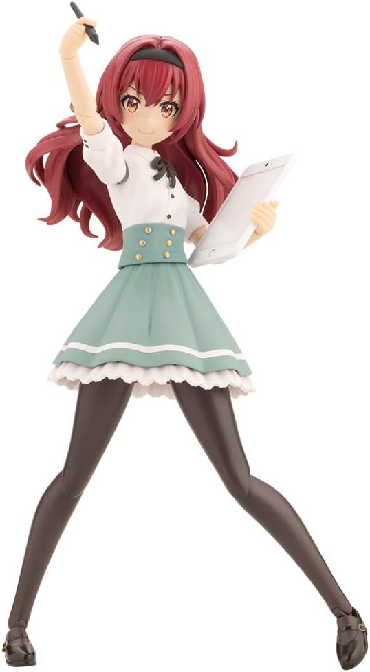 Plastic Assembled Figure Kit Thank you for your patience! Due to many fans' requests, "Emma-chan Senpai" is finally available as a plastic model! Emma Koishikawa, aka Emma-chan Senpai, is a cute little girl who loves games, anime, and special effects, and especially longs for "big, cool things" like monsters and robots. Her dream is to become an illustrator, and she is in her second year of high school! Points of interest The intricately sculpted hairstyle. Emma's trademark "loose, fluffy wave" hairstyle is divided into more than 10 parts to express her cute appearance. In addition, a "twin-tail" and "bun" selectable hairstyle is also included. The hair is also included with or without a "catsuit", and can be worn as a hair accessory or with glasses! Please enjoy the type of hair style you prefer! Pre-painted facial expressions are included. Emma comes with four different expressions: a smiling face, a shouting face, a disapproving face and a withdrawn face. She comes in both painted and unpainted versions. The unpainted type can also be used to change her eyes with the included expression decals! Petite and slender body Emma is 140cm tall. The size of the plastic model is the smallest in the series at 14cm. Please take note of her petite and slender body shape. Her feet are also sculpted in a small size to match the volume of her body. Shoes can be removed. The ball-jointed neck is designed to slide back and forth, allowing for a wide range of expressions. The ball joints can be used to create a 14cm uniform body for the Megami device. Eleven different wrist parts are included. A total of 11 different wrist parts are included, including four newly sculpted handles: "Handle (for pen tab)", "Handle (for tablet PC)", "Handle (for controller)" and "Cool flat hand". Twisted torso parts A special torso part is included that allows you to twist her waist and thrust her right arm forward, greatly expanding the range of posing options. [Skirt parts]. The white lines on the uniform skirt, which were pre-printed on Ritsuka Saeki, have been reproduced in separate parts for the "Normal Type" and "Nabiki Type". Three types of skirts are included: "Normal type", "Nabiki type" and "P.E. sitting type". Body for PE sitting]. Emma's sitting posture parts are carefully designed in the pose of "gymnastic sitting"! The body is made exclusively for Emma except for the head, arms, and ankles. A variety of accessories are included. A tablet PC and pen tab are both included, which are essential for Emma to be a goddess painter, allowing her to pose drawing. On the back of the tablet PC, you can see "that" emblem: ...... The smartphone comes in two modes: "Normal Mode" and "Gaming Mode," and features the Hexagear logo on the back of the smartphone. The school bag designated by St. Iris School for Girls has a 3mm hole when the emblem part is removed, and can be used with various flying bases. Five types of hair accessory parts corresponding to the corresponding bangs are also included. Set Contents 1) Koishikawa Emma body x 1 2) 2 kinds of hair style parts x 1 each Loose Waves", "Twin Tails", and "Bun". The twin-tails and the bun have a single base, and you can choose either one. 3) 4 kinds of bangs parts x 1 each With hair band (standard), With hair band (for glasses), Without hair band (standard), Without hair band (for hair accessories) 4)Expression parts (pre-painted type) 4 kinds x 1 each Smiling face, shouting face, disgusted face and withdrawn face 5)4 types of facial expressions (unpainted type) x 1 each Smiling face, shouting face, disgusted face and withdrawn face 6) 11 kinds of wrist parts x 1 each of left and right hand Handles (for pen tab)] [Handles (for tablet PC)] [Handles (for controller)] [Cool flat hand] [Normal handle] [Narrow handle] [Wide handle] [Round handle] [Grip hand] [Pointing hand A] [Flat hand 7) Twisting body parts x 1 8) P.E. sitting parts x 1 9) 3 types of skirt parts x 1 each Normal type", "Nabiki type" and "P.E. sitting type". *When using the gym-sitting type, a special body is used. 10)Ankle parts with shoes removed x 1 each of left and right 11)Tablet PC x 1 12)Pen tablet x 1 13)School bag designated by St. Iris Girls' School x 1 14)5 hair accessories x 1 each 15)Display base x 1 16)6mm diameter neck parts for Megami device x 1 17)Water transfer expression decal x 1 (C) KOTOBUKIYA ----- Product Size: Height: approx. 140mm Number of Parts 201-400 The image is a prototype. They may differ slightly from the actual product. Also, the product has been painted for the purpose of photography. (From Kotobukiya website)