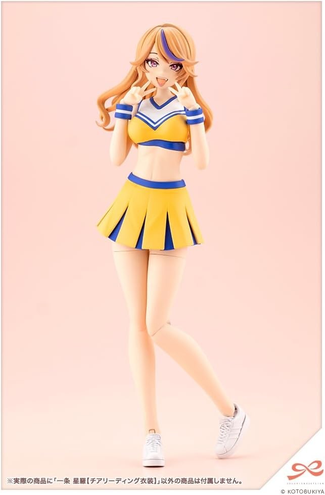 Plastic Assembly Figure Kit Go, go! You guys! Go, go, you guys! Build that plastic model~~v (heart) Queen Bee “Ichijo Seira,” who loves cheering on hard workers, shows her true colors! The most glamorous Seira in the series stands out in her cheerleading outfit, now as a plastic model! Of course, she'll cheer on modelers building their kits too! ▼Key Features 【Painted/Unpainted Expression Parts】 All included expression parts are newly sculpted, with 4 types provided! In addition to the “I love you face” for someone special, the “grinning face” and “scheming face” that convey intimacy, the lineup is richly varied, including a “sad face” for when she comforts you or shares your disappointment. Furthermore, water-slide decals with different eye directions are included. Applying these to the unpainted type allows you to create your own original expression parts. 【Three-Dimensional Hairstyle】 Seira's trademark active-looking side ponytail features loose waves, sculpted with a focus on detailed strand texture and an airy feel. This is the most intricately rendered hairstyle in the series. The hair color is light brown with a purple mesh highlight in the bangs as an accent. The mesh section of the bangs is color-separated, so even just assembling it gives a finish close to the completed look. ※The hairstyle parts share the same sculpt as the uniform version. 【Body Structure】 The white lines on the blue chest area of the costume are reproduced using pre-painted parts. The joint structure from the chest to the abdomen allows for forward-leaning and hip-arching poses. Additionally, the ball joint in the neck uses a front-to-back sliding type, enabling a wide range of facial expressions. 【Interchangeable Body Parts】 Alongside the articulated arms and legs, “fixed-pose body parts” prioritizing visual appeal are included. Deeply bent elbow angle and fully extended arm parts are included for both sides! Since they're molded as a single piece, there are no visible seams?a nice touch! ♪ Additionally, deeply bent knee angle leg parts are included for both sides. Combining these parts allows you to create captivating poses! 【2 Types of Skirt Parts】 In addition to the “Standard Type” for standing poses, a “Flap Type” for active cheer poses is included. 【Pom-Poms】 The essential cheerleader accessory, “Pom-Poms,” are included for both left and right sides. Their internal structure features a 3mm diameter grip, allowing for a secure hold. Each side has a different shape and a layered structure, meticulously designed with 5 parts per side. 【Molded Colors】 The cheer outfit features healthy coloring with “Yellow,” “White,” and “Blue” color separation. Parts are pre-painted, so assembly alone achieves a look close to the final image. Skin color uses Type A, allowing combination and play with many currently available characters. 【Display Base】 Like Yakushiji Kuon, it uses an action base with a movable support pillar. The molded color is orange, matching the uniform version base. ▼Accessories 1) Ichijo Seira Main Body ×1 2) Hairstyle Part ×1 “Side Tail” 3) Bangs Parts ×2 “Standard Type” / “Glasses Compatible Type” 4) Painted Expression Parts ×4 “Love Face” / “Grinning Face” / “Plotting Face” / “Sad Face” 5) Unpainted Expression Parts ×4 “Love Face” “Grinning Face,” “Plotting Face,” “Sad Face” 6) Wrist Parts ×12 (Left/Right) “Heart-Shaped Fingers,” “Gag,” “Peace Sign,” “Holding Hand (Standard),” “Holding Hand (Narrow),” “Holding Hand (Wide),” “Holding Hand (Round),” “Clutching Hand,” “Pointing Hand A,” “Flat Hand,” “Pinching Hand,” “3mm Shaft Flat Hand” 7) Fixed Pose Arm Parts “Extended Type” “Bent Type” × Left/Right Each 8) Fixed Pose Leg Parts “Bent Type” × Left/Right Each 9) Skirt Parts 2 Types × 1 Each 10) Pom-Poms × Left/Right Each 11) Display Base × 1 12) Megami Device Compatible Neck Joint × 1 13) Water-Slide Expression Decal × 1 (C) KOTOBUKIYA ----- Work S?sai Sh?jo Teien Series Character Plastic Model Scale 1/10 Product Size Total Height: Approx. 160mm Product Specifications Plastic Model Number of Parts 51-200 Material PS・ABS・POM・PVC (Phthalate-Free) Design Toy House Co., Ltd., Yunosuke Maruya Product Code JK036 Initial Release Month February 2026 *Images show prototype samples. Actual product may differ slightly. Also painted for photography purposes. (From the Kotobukiya website)