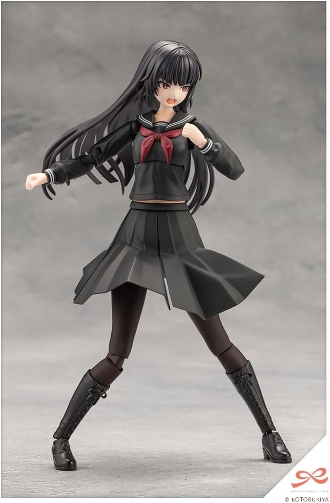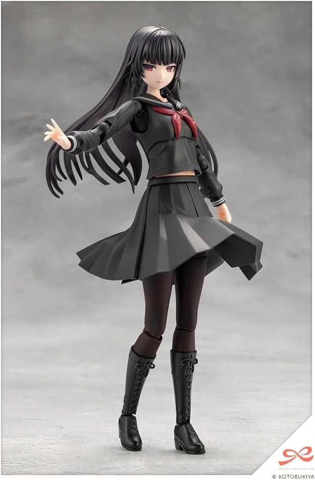 Plastic Assembled Figure Kit The first third-year student in the series, “Hisato Yakushiji,” appears in the costume of “Bonfire Maria,” the main character from “Mugen Encounter Megalo Maria! What is “Mugen KAIKOU MEGALOMARIA”? A popular special effects hero show that Emma loves that is broadcast in the world of Sosai Shoujo Garden. The actress “Yakushiji Kyuon” plays the main character “Bonfire Maria”. Points of Attention The joint structure emphasizes action poses. Since the character is playing the role of the main character in a special effects TV show, we have changed the direction of expression to focus on action poses. The joint structure is different from that of the previous Sosai Shoujo Garden, and is designed for people who are somewhat familiar with plastic model assembly. The figure is designed for those who are familiar with plastic modeling, and features “shoulder joints,” “twisting movement of the chest and abdomen,” “movable skirt,” and “double-jointed elbows and knees,” etc., allowing for intense action poses such as “holding swords with both hands,” “drawing swords,” and “kneeling posture. Crystal Effects The crystal effect that appears when the “Principal” blooms in the Megalomania play is reproduced with clear parts. Movable hair gimmick for scene effects. The back of her hair has a movable gimmick that allows the hair to be fluttered by the wind. Rugged expression for unusual scenes. The facial expressions are not designed for everyday scenes, but for battle scenes and other unusual scenes. There are four different facial expressions included: a serious face, a shouting face, a damaged face and a determined face, each of which comes in painted and unpainted versions. The included water-transferable decals have different eye decal directions, so you can create your favorite expression by attaching the eye decals to the unpainted expression type. Newly sculpted wrist parts are included to match the battle scenes. Five different hand parts are included, including a graceful flat hand, a powerful flat hand, a clenched fist, a sword handle, a gun handle, and other expressions suitable for battle scenes, making this lineup a perfect match for the various weapons sold separately. Pre-painted parts] The white lines of the sailor uniform are reproduced with pre-painted parts, allowing you to create a finish close to your image simply by assembling the figure. Skin color for fair skin The skin color is Color C. Dress Up Body [M] Color C Ver.” ”Saeki Ritsuka [Swimsuit] Hair Arrangement Ver. YOMI [Black Canvas], Emma Koishikawa [St. Iris High School Summer Uniform] Dreaming Style Wonderland Princess The “Dreaming Style Wonderland Princess” can be combined with “Nijimura Eimi [Reiho High School, Summer Uniform] Dreaming Style Romantic Memories” and others. Newly made display base The support part of the display base is newly sculpted and has movable joints. This makes it possible to display the figure in a wide range of action scenes. The color of the molding is clear red. Accessories 1) One set of Yakushiji Hisato body 2) 1 hair style part “Princess cut long hair” × 1 3)3 kinds of bangs parts x 1: “Normal type”, “Effect type” and “Glasses type 4)4 painted facial expressions: 1 each of “Serious face”, “Screaming face”, “Damaged face” and “Decisive face 5)4 unpainted facial expressions: 1 each of “serious face”, “shouting face”, “damaged face” and “determined face 6)5 kinds of wrist parts: [graceful flat hand], [powerful flat hand], [clenched fist], [sword handle], [gun handle] x left and right hand for each 7)Crystal effect x 1 8)Display base x 1 9)Megami Device compatible neck joint x 1 10)Water transfer type expression decal x 1 (C) KOTOBUKIYA ----- Works Sosai Shoujo Teien Series Character Plastic Model Scale 1/10 Product Size Total height: approx. 160mm Product Specifications Plastic Model Number of Parts 51-200 Material PS, ABS, POM, PVC (non-phthalate) Designed by Yunosuke Maruke Part number JK043 The image is a prototype. It may differ slightly from the actual product. Also, it has been painted for the purpose of photography. (From Kotobukiya website)