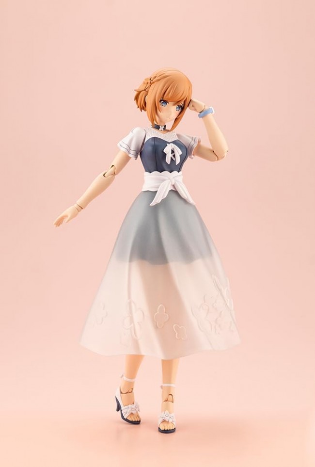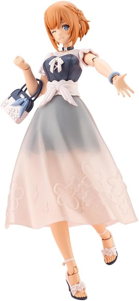 Plastic Assembled Figure Kit The “ReACT-iF” series based on the concept “If you want to enjoy fashion in the real world...” is now available! From the “Arcadia” series, the light-attribute angelic Dears “Lumitia” has been made into a plastic model in her “iF” form, a private outfit that has changed her attire from her fantasy costume! Four newly sculpted parts including a winking face, and arms and legs with double joints are included and can be shared with the regular Lumitia. The long skirt, which comes in an amazing one-part molding, is made of milky-white clear parts to reproduce the transparency of the sheer material, and can be removed to be replaced with a short skirt. Each part is designed with 3mm joints, allowing the figure to be combined with previous Kotobukiya original series figures. The figure is based on the color scheme of the popular illustrator “necomi”, who has worked extensively on game illustrations and VTuber character designs, so please enjoy the new appearance of “Lumitia”. Accessories and gimmicks Lumitia comes with four new pre-printed expressions: a winking face, a confused face, a squirming face, and a smiling face. Includes one long skirt and three short skirts. A long skirt and three short skirts are included, allowing you to recreate your favorite situations. Arm and leg parts that match Lumitia's skin color are included. The standard version of Lumitia can be displayed with bare arms and legs. She comes with 11 different PVC wrist parts including a piece and two hand hearts, one for each side. Six white molded PVC wrists for Lumitia are included as bonus parts, including the “piece” and “two hearts” for each hand. The joints are not visible from the front when the figure is standing, allowing for both a beautiful leg line and a wide range of posability. Hexagram-shaped joints are included on the back of the figure, allowing for compatibility with Hexagear series joints as well as the attachment of Lumitia's wings from the standard version. The 3mm diameter holes placed in various parts allow for use with existing M.S.G, Frame Arms, and Frame Arms Girl series armaments. A shinned waist decoration is included as a bonus part, which can be used with the standard version of Lumitia to make her sit. Water-transferable expression decals are included, allowing you to create your favorite expressions. A special stand is included. Neck parts for connecting the heads of Frame Arms Girl and Megami Device are included. (C) KOTOBUKIYA ----- Works Arcana Dia Series Character Plastic Model Scale NON Product Size Total height: approx. 160mm Product Specifications Plastic Model Number of Parts 51-200 Material PS, ABS, POM, PVC (non-phthalate) Design Tagochi, Yoshihiro Nishimaru Part number AR009 The image is a prototype. It may differ slightly from the actual product. Also, it has been painted for the purpose of photography. (From Kotobukiya website)