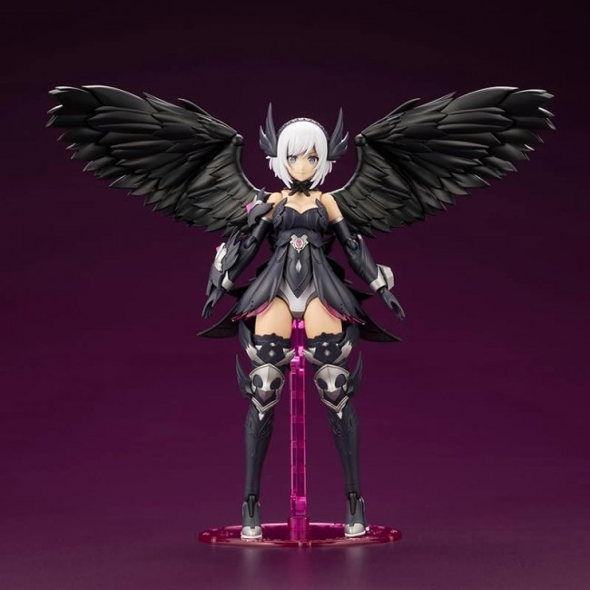 Plastic Assembled Figure Kit From the "Arcadia" series comes a plastic model of Lumitia, the light-attribute angelic Deers, as a dark-attribute Ver. "Lumitia ReACT-A", which gives the image of darkness at night. Four new facial expression parts create a different character from Lumitia. By reconfiguring the parts dedicated to each part, it is possible to reproduce two different forms in a single product: the non-combat state "Normal Mode" and the combat state "Wraith Mode". Each part is designed with 3mm joints, and can be combined with other Kotobukiya original series parts. As a bonus part, a head hair part runner is included in two colors, allowing you to choose your favorite color. The hair part comes with two color options for you to choose from, and the head part comes with two color options for you to choose from. Accessories & Gimmicks Four new facial expressions are included. The hair part comes in two different colors, allowing you to choose your favorite color. Two different modes can be reproduced by reconfiguring the parts dedicated to each part: "Normal Mode" (non-combat state) and "Wraith Mode" (combat state). A cover part is included to cover the connection hole for the headpiece, allowing you to recreate her standard hairstyle with the decoration removed. Water-transferable expression decals are included to create your favorite facial expressions. A ring part is included to engage Lumitia. The large wings are joint parts that are positioned to keep the silhouette of the figure, allowing for both a beautiful organic design and flexible mobility. The magic circle-shaped parts that connect the wings are hexagram-shaped joints with a 3mm hole in the center, ensuring stable holding power. Compatible with Hexagear series joints. The armored parts of the upper arms and knees can be attached in various positions by connecting with 3mm diameter joints. The joints are not visible from the front when the figure is standing, allowing for both a beautiful leg line and a wide range of movement. A sword and scabbard are included as exclusive weapons. A special stand is included. She comes with one set of crossed wrists that can be used to pose her in prayer or wish poses. Five PVC wrists are included, one for each side. Can hold existing M.S.G, Frame Arms, and Frame Arms Girl series armaments. The 3mm diameter holes placed in each part allow for use with existing M.S.G, Frame Arms, and Frame Arms Girl series armaments. A neck part for connecting the heads of Frame Arms Girl and Megami Device is included. (C) KOTOBUKIYA ----- Works Arcanadia Series Character Plastic Model Scale NON Product Size Height: approx. 170mm Product Specifications Plastic model Number of Parts 201-400 Material PS, ABS, POM, PVC (non-phthalate) Design Tago-ichi *The image is a prototype. It may differ slightly from the actual product. Also, it has been painted for the purpose of photography. (From Kotobukiya website)