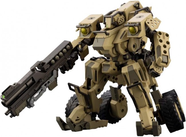 Plastic SF/anime character assembly kit [Aircraft commentary] The BA Loud Gale is a machine with many mysteries. When, where, by whom, and under what circumstances it was made, I have not been able to grasp it at all, and the name Loud Gale has only become established after someone began to call it. However, information about its design spread widely before anyone knew it, and several airframes were assembled and put into practical use in various places. It is said that armed groups or caravans operating in remote areas that have little connection with cities and large corporations began to manufacture them using the available parts and machine tools. The first one has yet to be identified. The system conversion implemented by BA Loud Gale is completely based on the frame structure of Bulkarm Grants, and is an essential element for the establishment of this aircraft. However, the BMI (Brain Machine Interface), which was another feature of Bulkarm Grants, is not installed, and there is no doubt that the selection of those specifications has greatly contributed to the reduction of the technical level required for manufacturing, maintenance, and operation of this machine. Compared to the original Bulkarm Grants, the details of the frame have been changed to extremely rough specifications, and this is intended to reduce performance deterioration due to harsh use and to withstand long-term operation by suppressing the required accuracy of parts and the movement performance of the aircraft from the beginning. Although reinforcement measures have been taken to compensate for the low accuracy inside the frame, the weight of the entire frame has increased, but since there is no heavy BMI-related equipment in the first place, there is no problem with the entire aircraft. Most of the standard exterior is a newly manufactured product, and although there are some parts that are very similar to Bulkarm Grants, it is completely different. Depending on the manufacturer, exterior parts of various specifications are mixed, and there is a wide variety from common metal materials to armor materials of unknown origin, and the armor materials that can be obtained vary depending on the time and place of manufacture, resulting in differences in performance depending on the individual. From the fact that the frame design is based on the structure of Bulk Arm Grants, it can be seen that the emphasis was placed on securing high mobility on rough terrain by reducing weight. Wild-type off-road tires are the ones that were once equipped with armored vehicles, and the reliability backed by battle proofs ensures its driving performance. These tendencies in specifications were supported by groups of caravans and refugees, which were not originally combat organizations, and were the reasons why they were sought even in the era when the main force of Hexa Gear for combat moved to the third generation. The wind that blows in the wasteland of death always greets the traveler wildly. Loud Gale's name was just likened by one of the travelers. On-board weapon ■ There is no standard armament [Product specifications] ■ System conversion from off-road type "vehicle mode" to "humanoid mode" is possible. ■An optional governor can be installed in the cockpit. ■The cockpit, which was exposed in vehicle mode, becomes a fully enclosed cockpit in humanoid mode to protect passengers. ■The head sensor is equipped with an opening and closing gimmick, and you can enjoy it in two styles: the rugged "closed face mode" and the heroic "open face mode". ■ The main weapon "Monster Bullet" is a large weapon that combines a grenade launcher and a shotgun, and can be equipped separately. You can enjoy the bullet reload gimmick. ■The magazine of the shotgun is precisely modeled down to the details of the internal ammunition. -You can enjoy using the laser cutter by attaching the included effect parts to the left and right forearms. ■Large wild tires molded with PVC material are suitable for off-road machines, and spare wheels are mounted on the back, so you can enjoy the scene where the governor changes wheels. -The armor that connects the torso and shoulders can be deployed forward to expand the range of motion of the arms and allow you to enjoy various action poses. ■A prototype rifle with the same design as the Bulkarm Grants is included, and two sets of long-type "expansion magazines" are included. Extended magazines can be linked by a 3mm shaft. ■The molding color of the main body is 8 colors of "desert yellow", "brown", "clear green", "clear yellow", "smoke gray", "metallic gray", "gunmetal" and "black". 【accessories】 ■ BA Loud Gale body × 1 set ■ Monster Barrett × 1 set ■Monster Barrett mount arm x 1 set ■ Forearm effect parts x 2 ■ Trial rifle × 1 ■ Extended magazine for trial rifle gun x 2 ■ Archive card × 1 *This product is a remanufactured product. (C) KOTOBUKIYA ----- the work hexa gear series kit block scale 1/24 product size Overall height about 175mm Product Specifications plastic model number of parts 201-400 material PS, PE, ABS, PVC (non-phthalate) design Shigeo Mohri *The image is a prototype. It may differ slightly from the actual product. It is also painted for photography. (From Kotobukiya website)