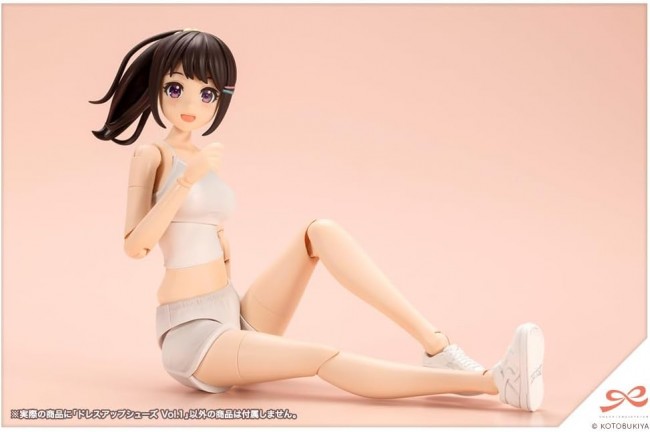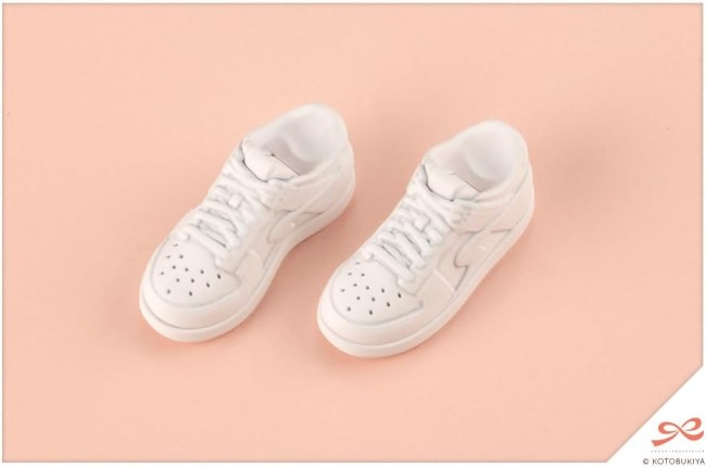 Small parts and accessories for figures Fashion starts from the feet up! Here comes a set of shoes that will bring out the best in you! This is a set of shoe parts that can be connected to the ankles of the “Dress Up Body [M]” to change the look of the feet. The first set includes 5 kinds of shoes! ▼ Points of Attention Shoes】[Joe Shoes The indoor shoes that are indispensable for school life. They are molded in two colors, white and blue, so you can enjoy them as the standard color scheme without painting. Sneakers with dials The new standard tech sneakers for active students. They can be used in a wide range of situations, from daily outings to club activities. Sneakers Easy-to-use casual sneakers. Madoka Yuki [Peach Blossom High School, Summer Uniform] Unpainted version of the sneakers used for Black Canvas. The white color is easy to match with various outfits and convenient for painting. Frilled sandals. Sandals designed to go well with both skirts and pants. Molded in white, blue and skin color. 【Geta Geta (clogs) add color to your summer memories. Combine with the Tiny Closet Yukata (sold separately) to complete the yukata coordinate. The skin color of the frilly sandals and geta is the most common color used in the Sosai series, including “Madoka Yuki [Momozakura High School, winter uniform]”. *Can be connected to some of the uniform bodies. Due to shape restrictions, not all characters are compatible. ▼Accessories 1) Upper school shoes x 1 2) Sneakers with dials x 1 3) Sneakers x 1 4) Frilled sandals x 1 5) Geta×1 (C) KOTOBUKIYA ----- Works Sosai Shoujo Teien Series Character Plastic Model Scale 1/10 Product size Length: approx. 20mm Product Specifications Plastic model Number of Parts 1-50 Material PS, ABS Designed by Yunosuke Maruke Part number MV015 The image is a prototype. Actual product may differ slightly. (From Kotobukiya website)