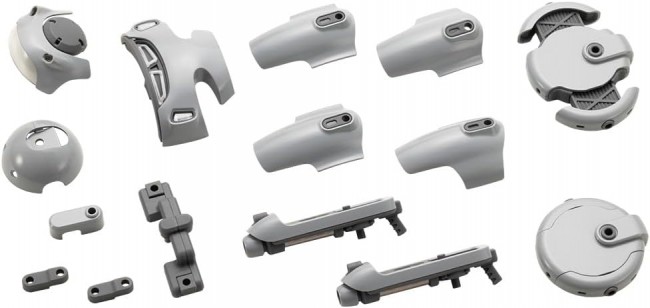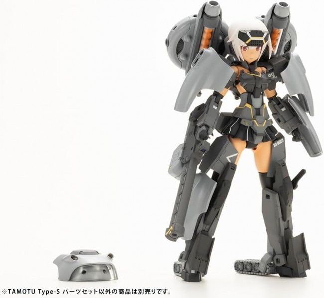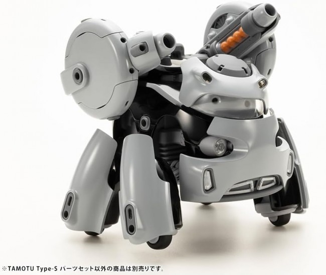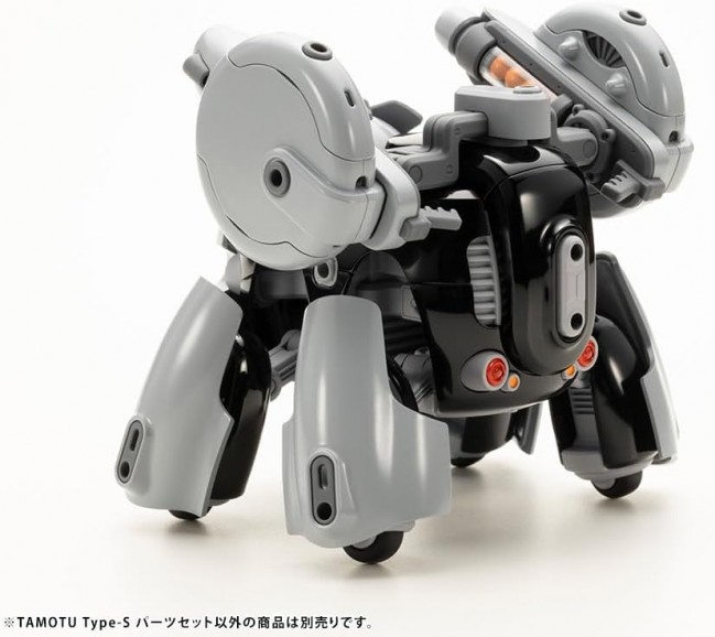 Detail Up Parts (SF) Let's customize your own "MARUTTOYS" plastic model! New item "TAMOTU Type-S Parts Set" is now available, which includes additional parts for "TAMOTU Type-S" and can be enjoyed as "M.S.G."! Setup The "TAMOTU Type-S Parts Set" is an option to upgrade "TAMOTU" to a security robot. The front and sides of the robot have additional armor, and the head is equipped with an "additional sensor unit". On its back are a "drone" and a "paintball ejector." The two "drones" can be linked to the "TAMOTU" itself for efficient patrols of the facility. The paintball projectile launcher fires highly viscous paintballs. Aiming at the robot's camera can take away its vision, while aiming at the robot's joints can slow it down. The gray coloring of the "TAMOTU Type-S Parts Set" is a collaboration with a manufacturer that sells many general-purpose custom options. Product Specifications. This product is a parts set for Kotobukiya plastic model "TAMOTU" and others. Please note that the kit itself is not included. The additional equipment parts of the "TAMOTU Type-S" are molded in a gray coloring suitable for modification. The kit is molded in 3 colors: "Light Gray", "Dark Gray" and "Colorless Clear". The kit can be combined with various "TAMOTU" models (sold separately) to create the "TAMOTU Type-S." *Please note that due to product specifications, the "TAMOTU Type-S" is not included in this product lineup. The head cover of the "TAMOTU" will be molded in light gray due to product specifications. The two "Paint Bullet Ejectors" can be used with "Frame Arms Girl", "Megami Device", "Megalomaria" and other character plastic models. The two "drones" can transform from standby mode to flight mode. They can be displayed using the New Flying Base (sold separately) or Hexagear Mini Flying Bases (sold separately). The "Drone" can also be recreated in flight form with the "Paint Cannon" attached. How to enjoy! Using the 3mm diameter joints (holes and axes) on each part, you can freely customize the figure by combining it with "M.S.G", "Frame Arms Girl", "Hexagear" and other models. You can share the same world view with NON-scale "Frame Arms Girl" and 1/24-scale "Hexagear" and enjoy combining them without sticking to the 1/12 scale of the setting. Set Contents Additional sensor unit (for the head) Head cover for TAMOTU Type-S Armor (for body), armor (for front legs) × 2, armor (for rear legs, left and right) Paint projectile ejector x 2 Drone x 2 2 drones (with paint projectile ejector) attachment parts for display × 2 Back mount unit Cover for back mount unit (C)MARUTTOYS ----- Works MARUTTOYS Series Character Plastic Model Scale 1/12 Product size Length approx. 60mm Product specification Plastic model Number of Parts 51-200 Material PS, ABS Designed by MiZ (Kouki Mizuno) Part number KP762 The image is a prototype. It may differ slightly from the actual product. Also, it has been painted for the purpose of photography. (From Kotobukiya website)