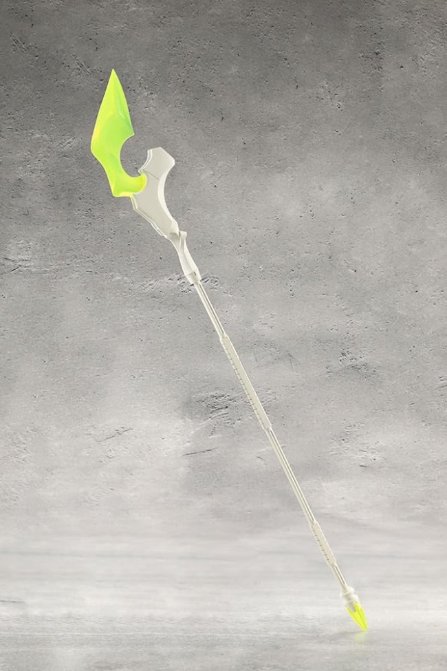 Parts for detail up (SF) Large armament that can be used as the scythe of the Grim Reaper and the wizard's staff is now available! This product is a single product with a different molding color of the scythe included in the “Necro Face”. The blade part is molded clear, and by replacing the blade part, you can play with it as a “magic staff (wand form)” in addition to the basic form of “Curse Reaper (scythe form)”. The stone butt is molded in a + shape, and can be used for the movable eyeball gimmick of the Necro Face. Coloring. Fluorescent yellow (clear), white (same color as Seeker) Accessories Curse Reaper (scythe) x 1 Clear parts for Magic Staff x 1 (C) KOTOBUKIYA ----- Works Infinity Encounter Megalo Maria Series TOKYO Mark Character Plastic Model Scale NON Product size Length: approx. 247mm Product Specifications Plastic model Number of Parts 1-50 Material PS Designer Katsuhiko Hori Part number CX014 The image is a prototype. It may differ slightly from the actual product. It has been painted for the purpose of photography. (From Kotobukiya website)