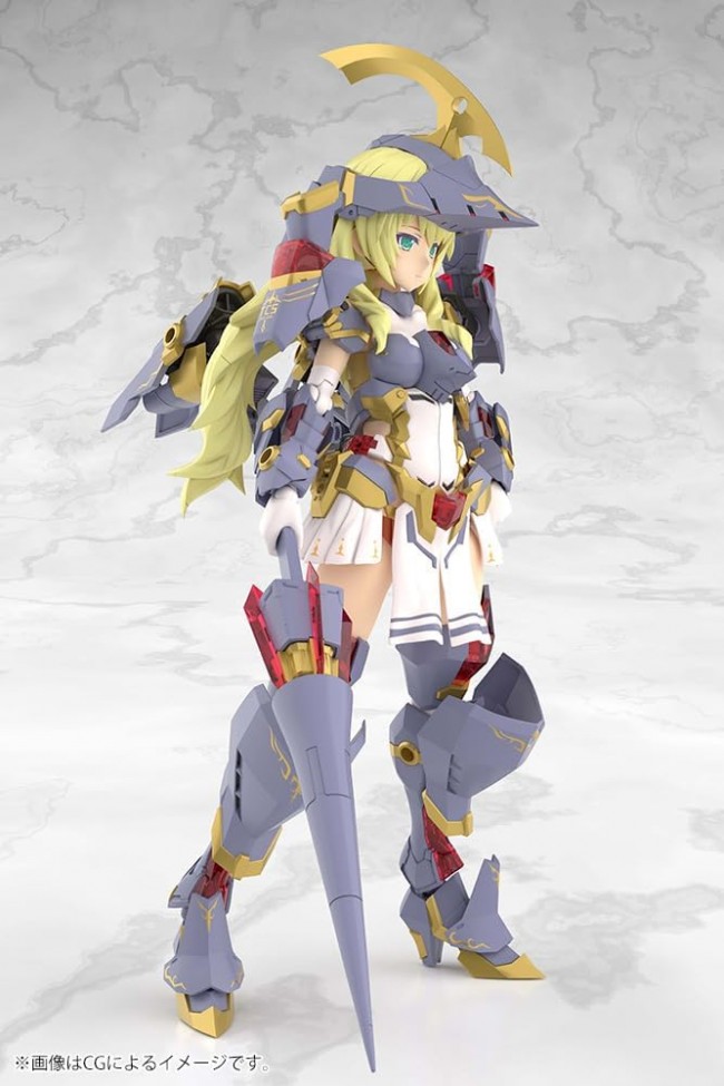 Plastic SF/Anime Character Assembly Kit New Series: GRANDE SCALE The latest release in the series is the commercialization of “Durga I”! We've produced “Durga I” at a 1/6 human scale (approx. 25cm). Designers are, of course, ToMo and Eiji Komatsu. We've enlarged and redesigned the intricate CAD data from Kotobukiya plastic models to deliver this large (Grande) scale to our customers. It offers the unique hobby enjoyment of a large scale, including greater playability, easier assembly, and easier painting. 【Product Details】 ・Increased color reproduction via molded colors due to the enlarged scale. ・Includes 3 pre-printed face parts: “Standard Face,” “Smiling Face with One Eye Closed,” and “Screaming Face.” ・Front hair can be styled by removing armor and attaching a ribbon. Also includes a front hair piece without headgear. ・Decals for eyes, patterns, gold markings, etc. are included. ・Distinctive transparent armor sections are reproduced with clear parts. Mechanical molding is engraved on the underside of parts. ・Increased armor parts connect via 5mm diameter joints, allowing various attachments beyond the basic form. ・Includes the lance-type “Hail Rang” as a dedicated weapon. ・The “Hail Rang” can separate into a short lance and a mace. ・Includes optional joint parts for the thighs. ・Waist joint parts are included. ・Extensive articulation is achieved through movable parts like the pull-out chest joint and shoulder joints. ・Wide range of motion is realized by combining the sliding hip joint with the pull-out joint inside the thigh. ・The wrists use ball joints with pivot movement, enabling expressive posing. ・Five types of PVC wrists are included for each hand. The wrists, including their joints, are interchangeable with existing Frame Arms Girl Grande Scale series wrists. ・Includes a larger PVC weapon-holding wrist suitable for standard 1/6 scale dolls. Can hold guns, swords, etc. ・Includes parts to convert 5mm diameter holes to 3mm diameter holes. Allows use with existing M.S.G series and Kotobukiya plastic model series weapons. 【About GRANDE SCALE】 We take the intricate CAD data from Kotobukiya plastic models, scale it up, and redesign it to deliver a larger (GRANDE) scale to our customers. It offers the unique hobby enjoyment of a larger scale, such as expanded play possibilities, easier assembly, and easier painting. 【Frame Arms Girl (FA Girl)】 Frame Arms Girl is a spin-off series that transforms the mechs from Kotobukiya's original robot content “Frame Arms” into beautiful girls. With color-separated molded parts and pre-printed face parts, assembly alone achieves a finished look without painting. The signature 3mm diameter holes placed throughout the frame and PVC wrists allow compatibility with the vast M.S.G Weapon Unit series, as well as weapons and armor from the Frame Arms series. Compatibility is also ensured for heads, arms, legs, and other parts with future FA Girl releases, enabling you to customize your very own Frame Arms Girl (FA Girl). (C) KOTOBUKIYA ----- Product Specifications Series Frame Arms Girl Series Grand Scale Character Plastic Model Scale NON Product Size Total Height Approx. 250mm Product Specifications Plastic Model Number of Parts 201-400 Materials PS・PE・ABS・POM・PVC Prototype Design Yasutomo Shimizu, Hajime Kusunoki, Yatsune Product Code FG180 Initial Release Month June 2026 ※Images are CG renderings. Actual product may differ slightly. (From the Kotobukiya website)